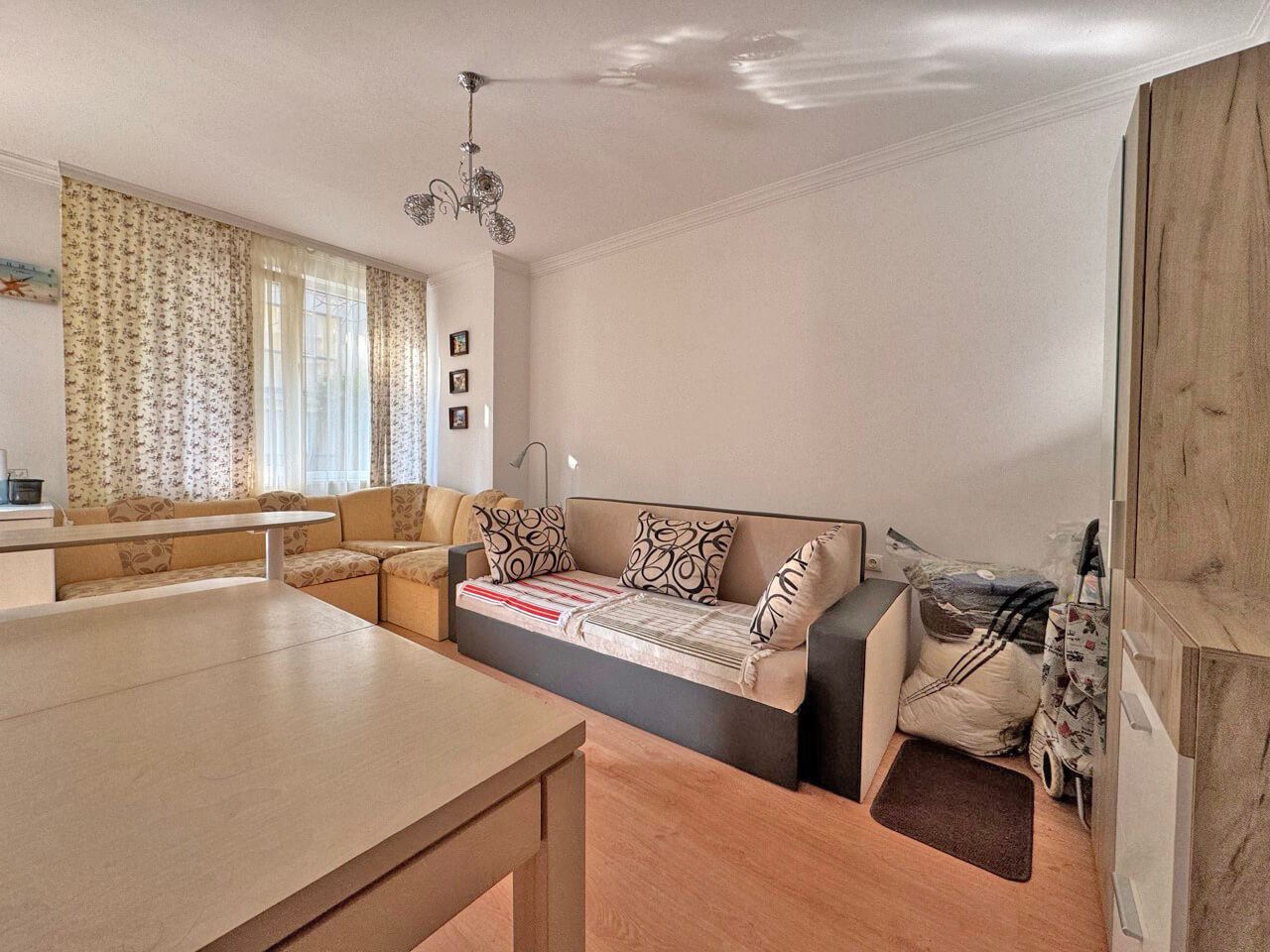 Wir präsentieren ein Studio mit einer Gesamtfläche von 36 m², gelegen im Erdgeschoss eines modernen Komplexes im Ferienort Sonnenstrand. Die Immobilie vereint Komfort, Funktionalität und stilvolles Interieur und bietet eine hervorragende Gelegenheit sowohl als Ferienobjekt als auch als Investition mit Vermietungspotenzial. Das Studio wird voll möbliert und ausgestattet verkauft und ist sofort bezugsfertig, was den Erwerb besonders bequem für den neuen Eigentümer macht.
