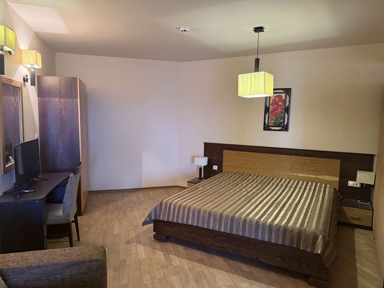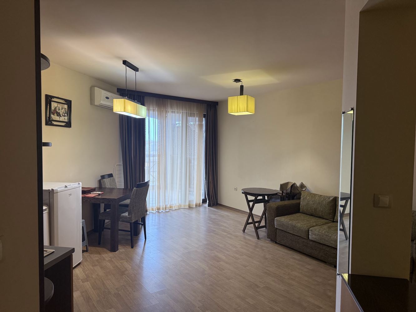Wir präsentieren ein großes Studio mit einer Gesamtfläche von 75 m², gelegen im dritten Stock eines stilvollen Komplexes nur 1 km vom Zentrum von Sonnenstrand entfernt. Diese Immobilie ist eine ideale Wahl für alle, die eine Kombination aus Raum, Komfort und Annehmlichkeiten suchen, geeignet für Urlaub, ganzjährig Nutzung oder Vermietung.