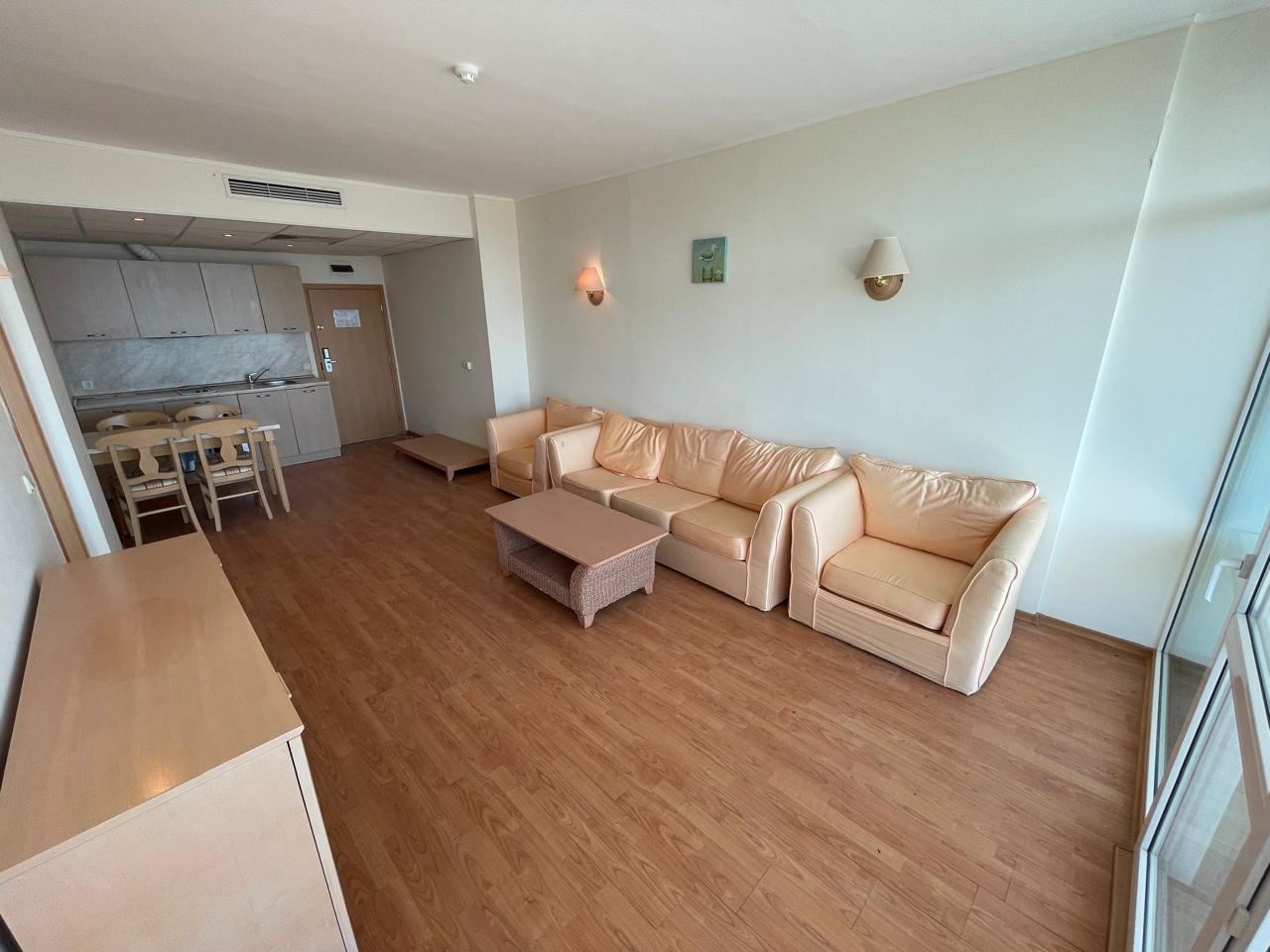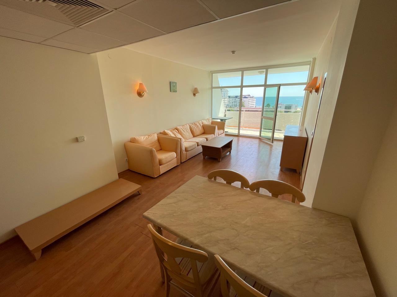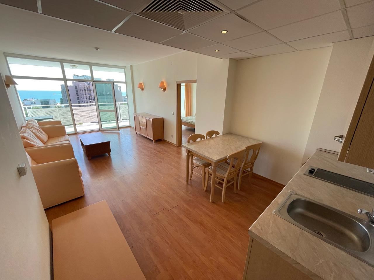 Wir präsentieren Ihnen eine außergewöhnliche Zwei-Zimmer-Wohnung mit faszinierendem Meerblick, gelegen im Herzen des Sonnenstrands. Diese großzügige Immobilie mit einer Gesamtfläche von 96 m² bietet eine perfekte Kombination aus Komfort und Eleganz – ideal sowohl für den Urlaub als auch als Investition. Die Wohnung befindet sich im siebten Stock eines modernen Komplexes mit Aufzug und bietet einen atemberaubenden Panoramablick auf den endlosen blauen Horizont des Meeres. Sie verfügt über ein stilvoll eingerichtetes Wohnzimmer mit Küchenzeile und gemütlichem Ruhebereich, ein geräumiges Schlafzimmer sowie ein Badezimmer mit Badewanne und WC. Von der Terrasse aus eröffnet sich ein märchenhafter Ausblick, der das Meer und die Schönheit der umliegenden Natur vereint. Die Wohnung wird vollständig möbliert und ausgestattet angeboten und ist sofort bezugsfertig.