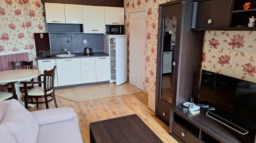 Wir präsentieren eine Ein-Schlafzimmer-Wohnung, gelegen im vierten Stock eines gut gepflegten Komplexes im beliebten Seebad Ravda. Die Immobilie hat eine Gesamtfläche von 54 m² und wird vollständig möbliert und ausgestattet angeboten, bereit für sofortigen Einzug oder Nutzung als Ferienimmobilie. Der Hauptakzent der Wohnung ist eine gemütliche Terrasse mit wunderschönem Ausblick, die einen ruhigen und angenehmen Ort für Entspannung, Freizeit oder abendliche Treffen im Freien bietet.
