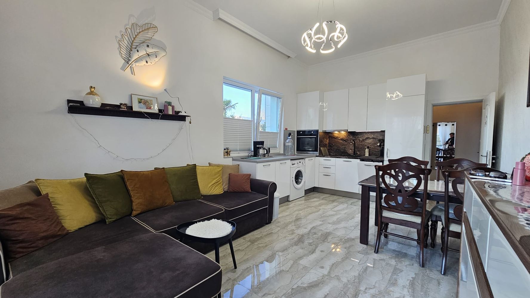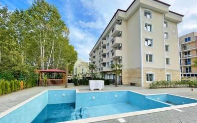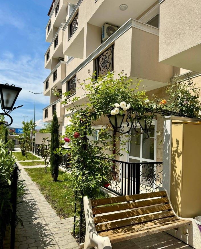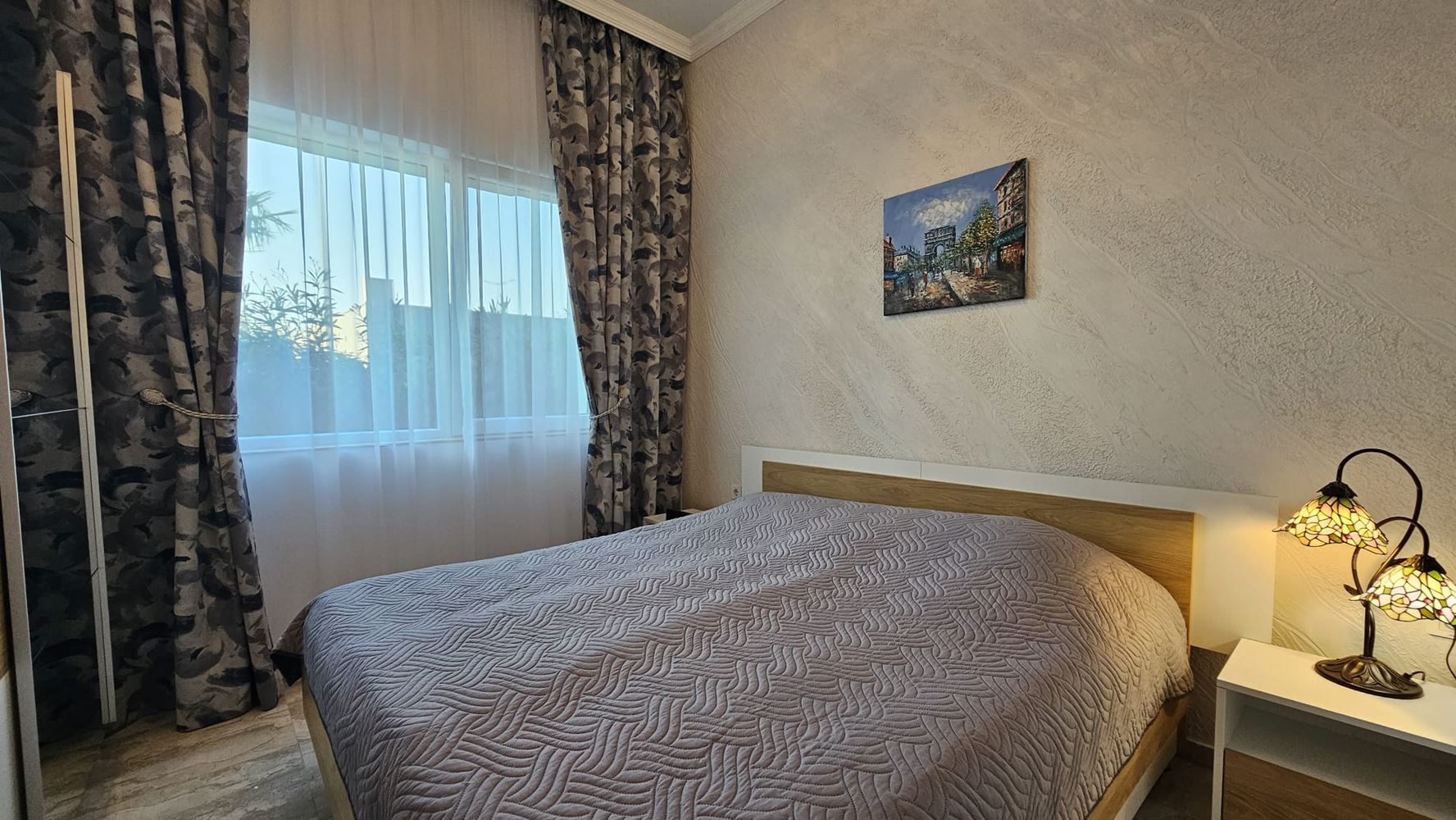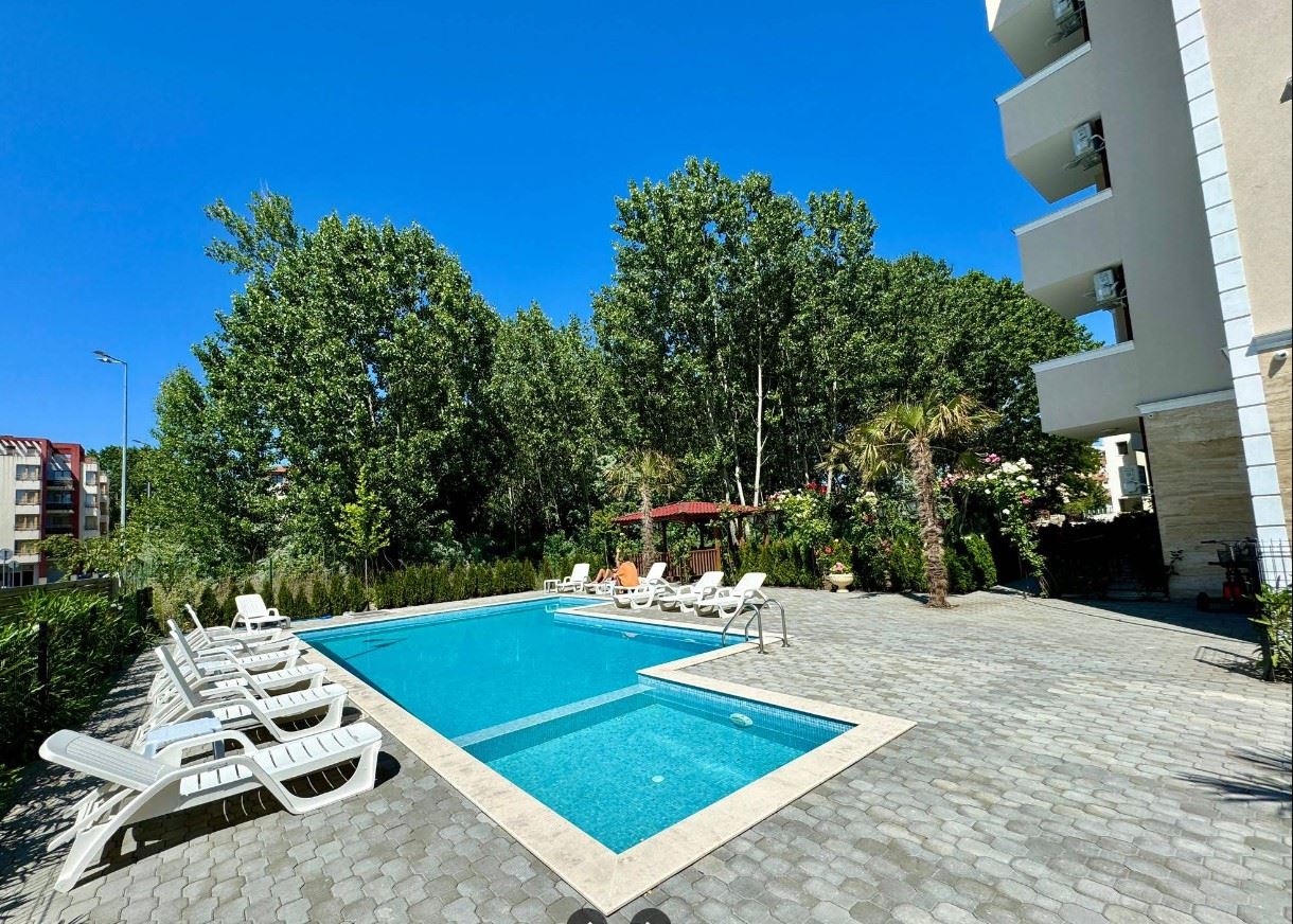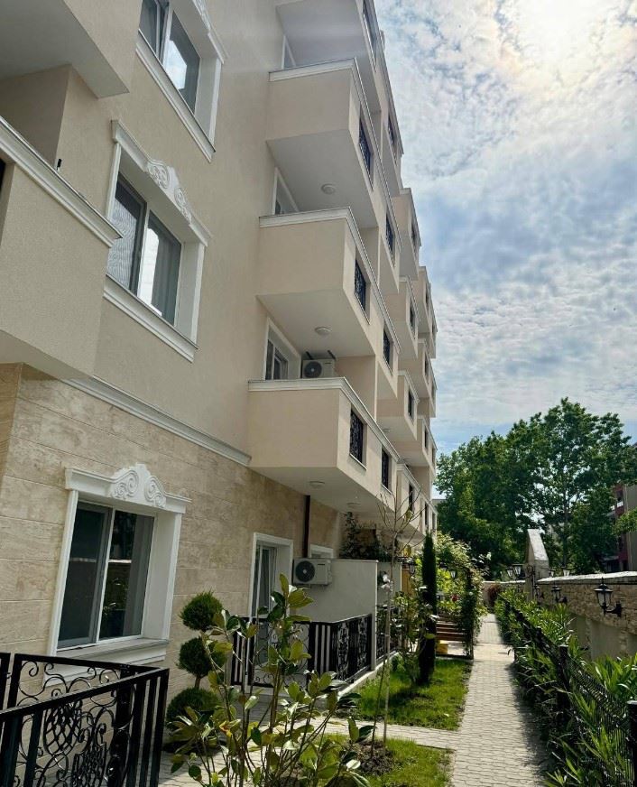 Wir bieten eine gemütliche Zweizimmerwohnung im Erdgeschoss eines prestigeträchtigen Komplexes in Sonnenstrand zum Verkauf an. Die Immobilie ist vollständig möbliert und sofort bezugsfertig. Die große Terrasse mit direktem Zugang zum Garten vermittelt ein Gefühl von Weite, Freiheit und Komfort – ideal für den Morgenkaffee, einen Entspannungsbereich oder einen sicheren Spielplatz für Kinder und Haustiere. Mit einer Gesamtfläche von 60,10 m² ist die Wohnung funktional gestaltet: Eingangsbereich, helles Wohnzimmer mit Ruhe- und Essbereich, separate Küchenzeile, komfortables Schlafzimmer, Badezimmer mit WC sowie eine große Terrasse/Balkon. Das Design und die Einrichtung sind auf maximalen Alltagskomfort abgestimmt, und die großen Fenster sorgen für angenehmes Tageslicht.
