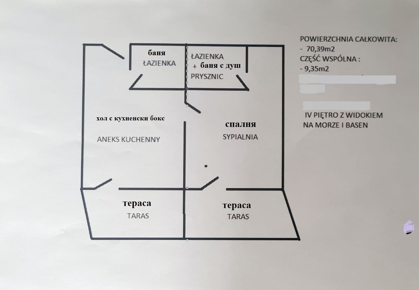 Die Wohnung hat eine Gesamtfläche von 70,39 m², die optimal aufgeteilt ist in zwei großzügige Zimmer, ein komfortables Schlafzimmer sowie zwei stilvolle Balkone, von denen aus Sie den atemberaubenden Blick auf das Meer genießen können. Zwei Badezimmer sorgen für zusätzlichen Komfort und Funktionalität. Ein Aufzug im Gebäude gewährleistet einen bequemen Zugang zur Wohnung.