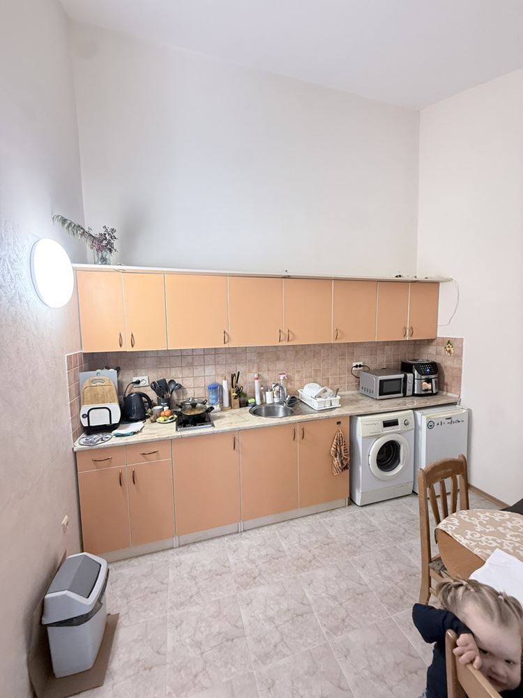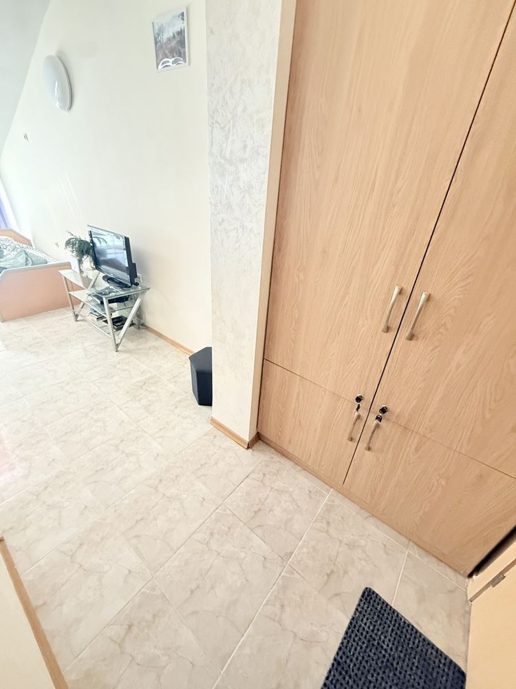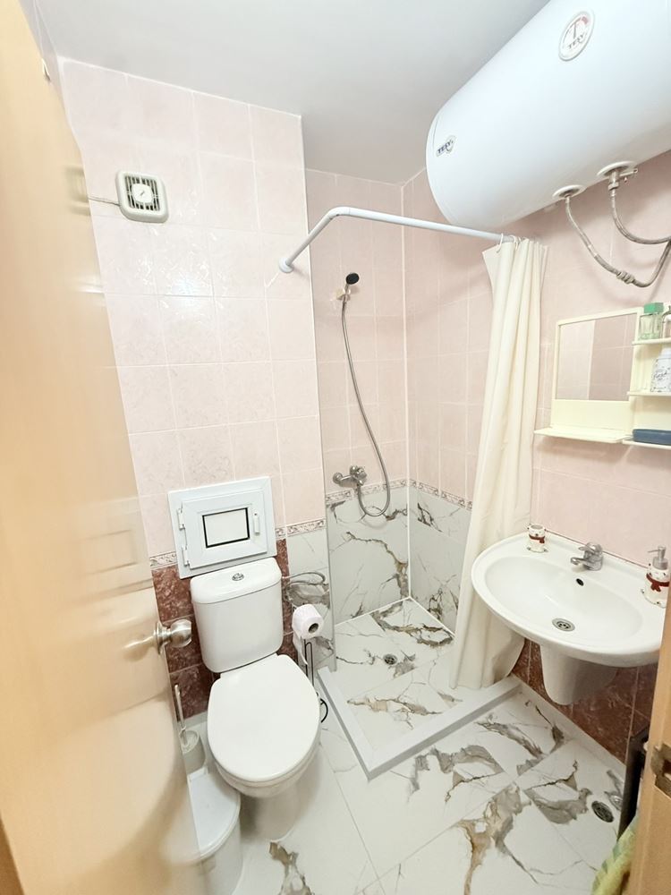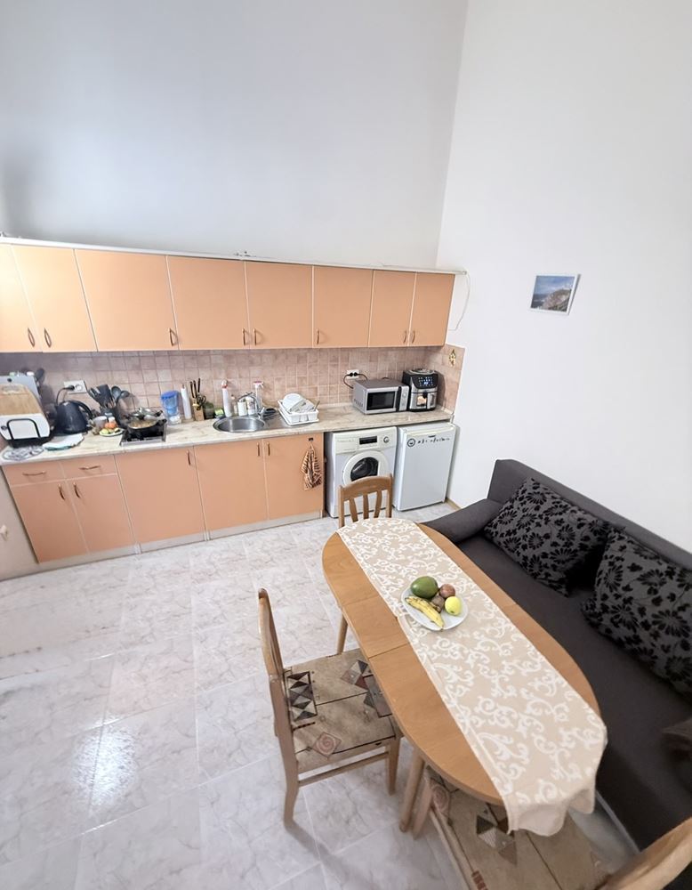 Wir präsentieren eine geräumige Wohnung mit einem Schlafzimmer mit einer Fläche von 62,74 m², gelegen im dritten Stock in einer sehr gut gepflegten Anlage in Sonnenstrand, nur 200 Meter vom Meer entfernt. Die Immobilie ist vollständig möbliert und bietet eine gemütliche und funktionale Umgebung, geeignet sowohl für den Eigenbedarf als auch als Investition zur Vermietung. Die Wohnung zeichnet sich durch eine praktische Aufteilung aus, bei der Küche und Essbereich getrennt sind, was zusätzlichen Komfort und Praktikabilität im Alltag schafft. Die geräumigen Räume sind hell und gut organisiert, was zum Gefühl von Gemütlichkeit und Ruhe beiträgt.
