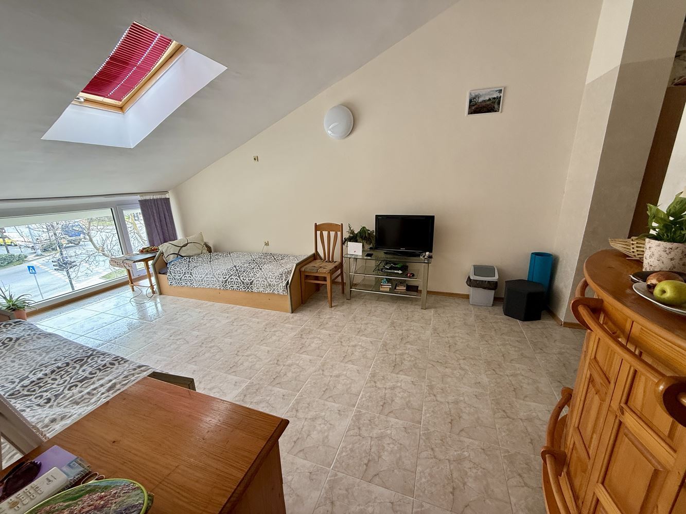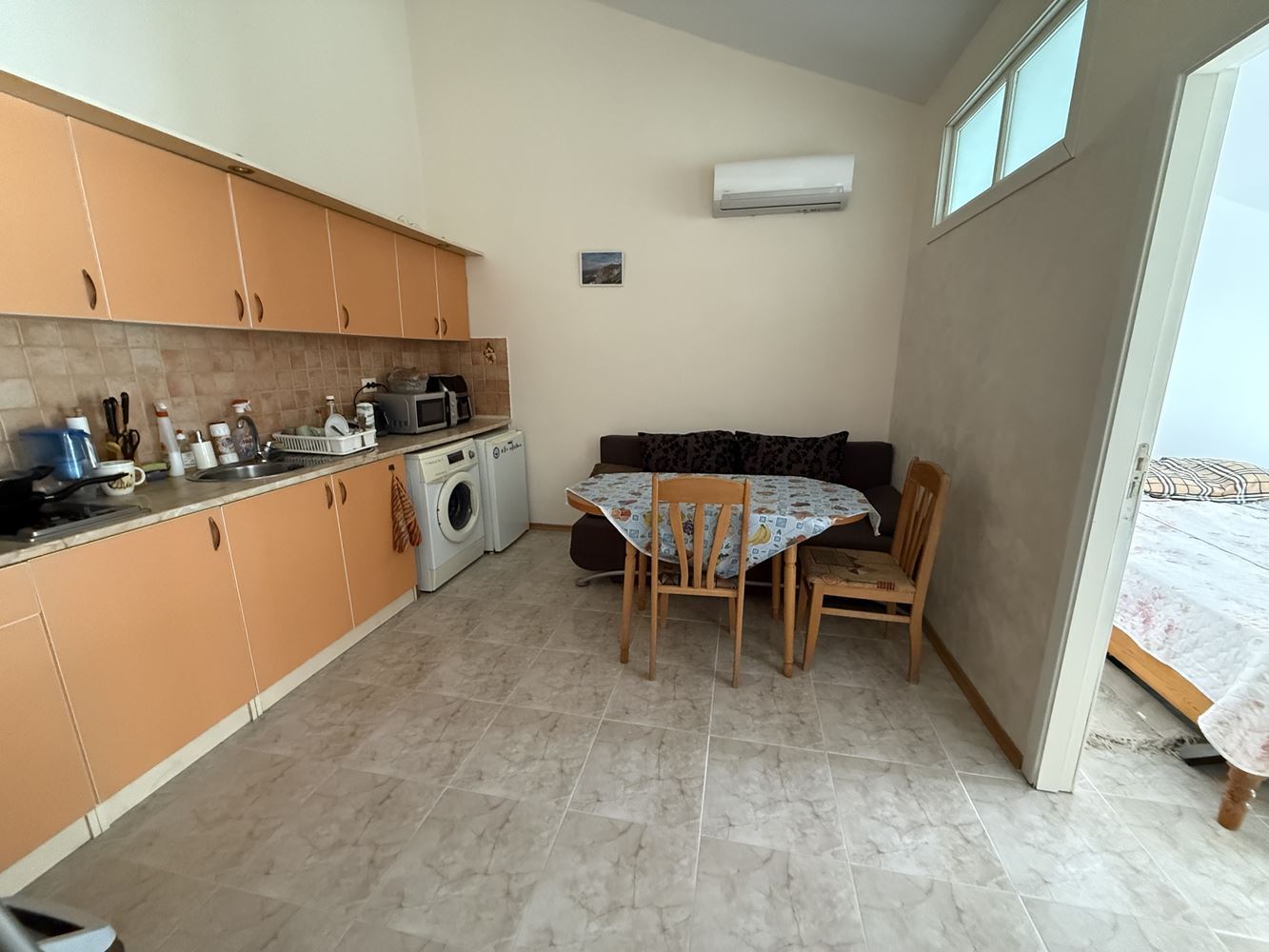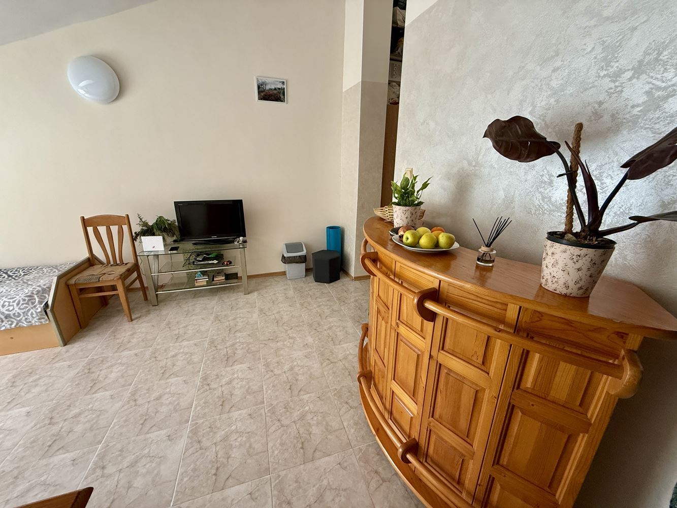 Wir präsentieren eine geräumige Wohnung mit einem Schlafzimmer mit einer Fläche von 62,74 m², gelegen im dritten Stock in einer sehr gut gepflegten Anlage in Sonnenstrand, nur 200 Meter vom Meer entfernt. Die Immobilie ist vollständig möbliert und bietet eine gemütliche und funktionale Umgebung, geeignet sowohl für den Eigenbedarf als auch als Investition zur Vermietung. Die Wohnung zeichnet sich durch eine praktische Aufteilung aus, bei der Küche und Essbereich getrennt sind, was zusätzlichen Komfort und Praktikabilität im Alltag schafft. Die geräumigen Räume sind hell und gut organisiert, was zum Gefühl von Gemütlichkeit und Ruhe beiträgt.