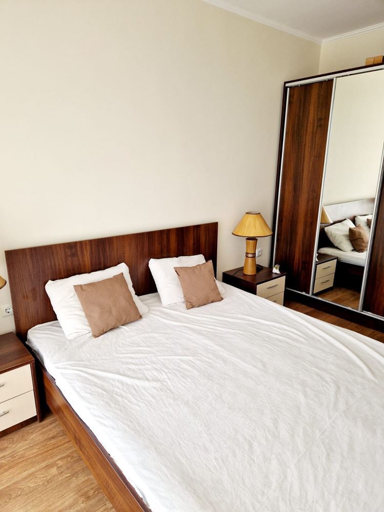 Wir präsentieren Ihnen eine komfortable 2-Zimmer-Wohnung mit herrlichem Blick auf das Meer und die Berge, in einem Wohnkomplex im Ferienort Sveti Vlas. Diese Wohnung befindet sich in einem ruhigen Gebiet, ca. 700 Meter vom Meer und dem Sandstrand entfernt. Der größte Yachthafen Bulgariens befindet sich ca. 1,5 km von der Anlage entfernt, was diese Wohnung zu einem idealen Ort für Segelbegeisterte macht. Die Lage in Sveti Vlas garantiert die Nähe zu allen notwendigen städtischen Infrastrukturen, einschließlich Geschäften, Restaurants, Kindergärten und Spielplätzen sowie einer schönen Promenade. Die Wohnanlage besteht aus zwei fünfstöckigen Gebäuden mit moderner Architektur und Aufzügen. Auf dem Dach des Gebäudes befindet sich eine Dachterrasse mit einem Café und einer Sonnenterrasse, von der aus Sie den Blick auf das Meer und die Berge genießen können. Die Wohnung hat eine Gesamtfläche von 63 qm und befindet sich im zweiten Stock und verfügt über zwei Balkone. Die Wohnung ist voll möbliert und ausgestattet.