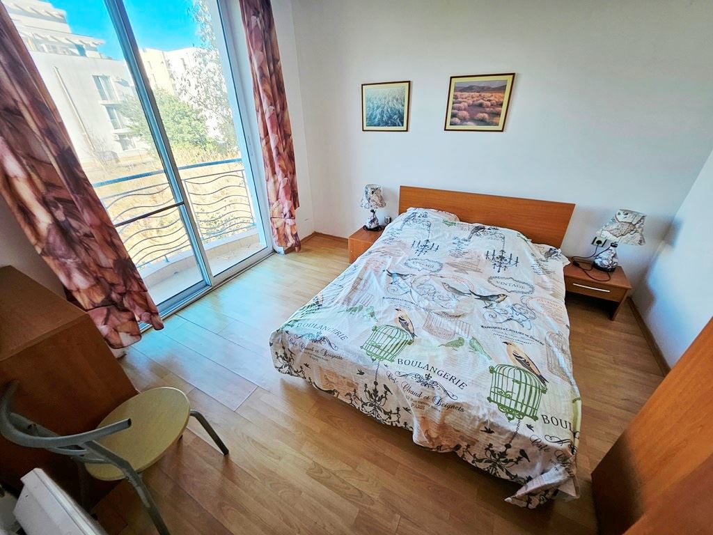 Wir präsentieren eine helle Zwei-Zimmer-Wohnung mit schönem Ausblick im beliebten Ferienort Sonnenstrand (Sunny Beach). Die Immobilie befindet sich im zweiten Stock und bietet eine Gesamtfläche von 40 m² – optimal aufgeteilt für komfortables Wohnen. Die Aufteilung umfasst ein Wohnzimmer mit Küchenzeile und Essbereich, ein separates Schlafzimmer, ein Badezimmer mit WC sowie einen kleinen Balkon mit Blick auf die Anlage.