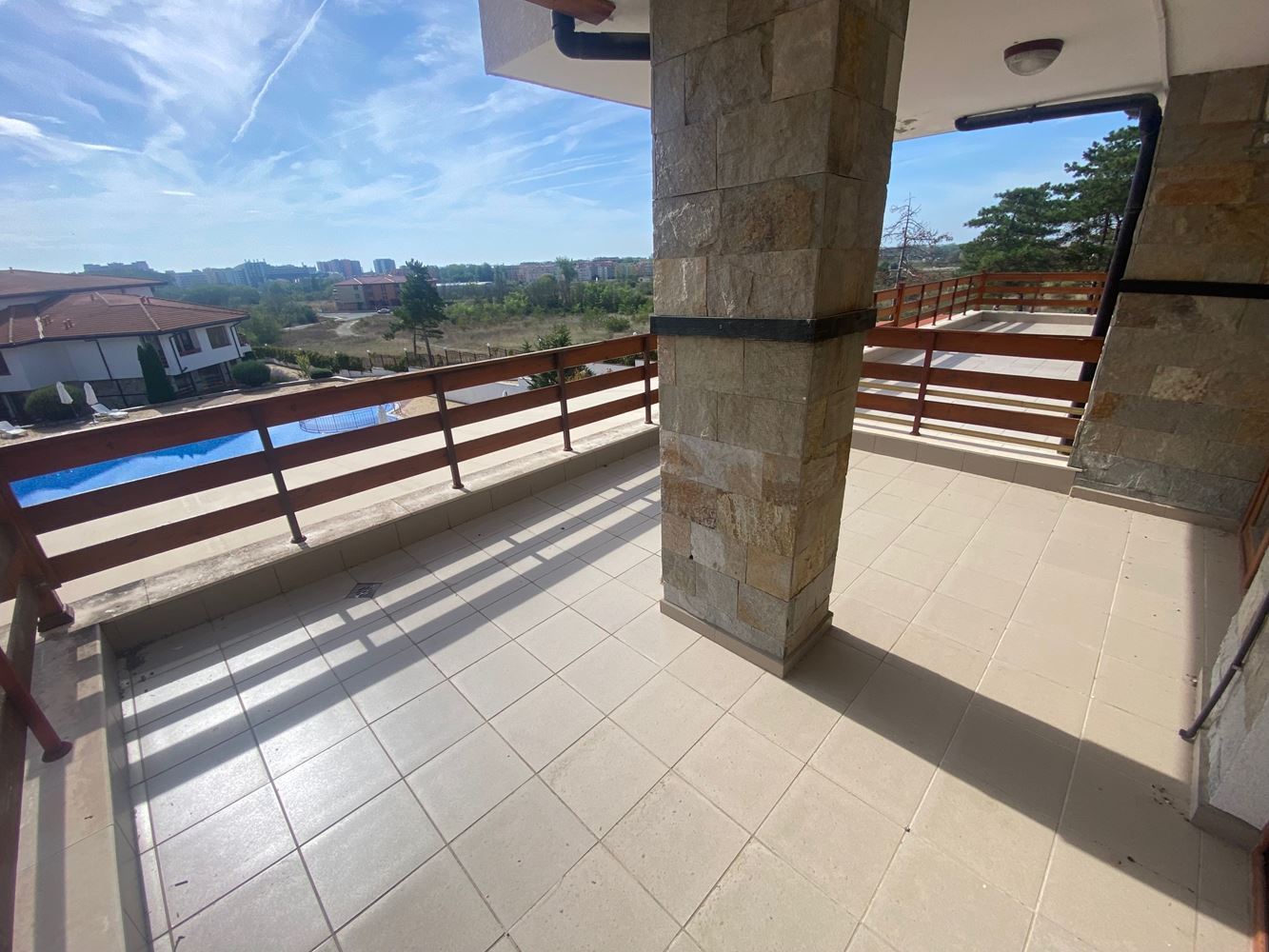Wir bieten ein gemütliches Studio mit Blick auf den Pool in einer malerischen Anlage, am Fuße des Balkangebirges, nicht weit von der Küste entfernt. Dieses Gebiet zeichnet sich durch schöne grüne Hänge, herrlichen Meerblick und ein Gefühl von Frieden und Ruhe. Die Architektur des Komplexes ist in einem spezifischen traditionellen bulgarischen Stil ausgeführt, der sich vom Rest der modernen Bauten unterscheidet und ein angenehmes Gefühl von Authentizität und Harmonie mit der umgebenden Natur vermittelt. Der Komplex verfügt über ein Restaurant, Außenpool, Kinderspielplatz, Erholungsgebiete, Grill, Sicherheit, Parkplatz. Das Studio mit einer Gesamtfläche von 27 qm befindet sich im ersten Wohngeschoss. Es besteht aus Wohnzimmer mit Kochnische und Schlafbereich, Bad und große Terrasse mit Blick auf den schönen Pool. Die Wohnung ist komplett mit Möbeln und Geräten ausgestattet.