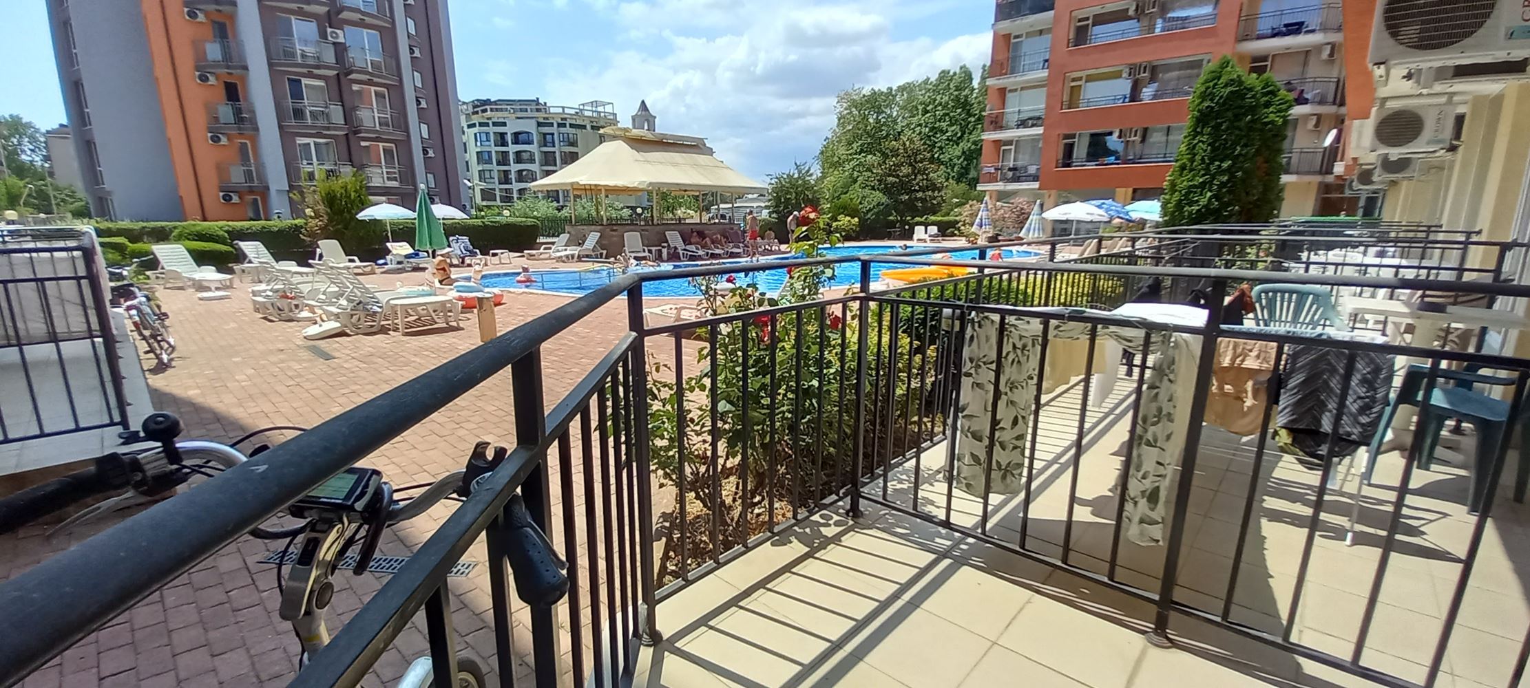 Dieses außergewöhnliche Angebot befindet sich im Erdgeschoss und verfügt über eine Gesamtfläche von 42 m² – die ideale Lösung für alle, die Komfort und Gemütlichkeit schätzen. Das Studio umfasst einen großzügigen Raum, in dem alle Bedürfnisse des zukünftigen Eigentümers erfüllt werden – Küche, Schlaf- und Wohnbereich in einem. Das Badezimmer ist modern ausgestattet und bietet alles Notwendige für Ihren Komfort. Der geräumige Balkon eröffnet einen schönen Blick auf den Pool und ist damit der perfekte Ort für den Morgenkaffee oder einen Cocktail am Abend.