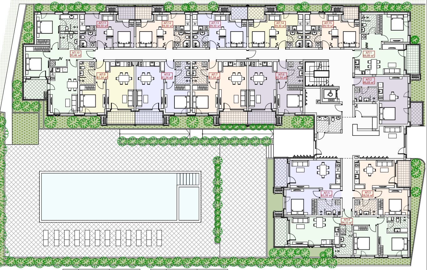 Der Komplex bietet eine Vielfalt an schlüsselfertigen Wohnungen:
