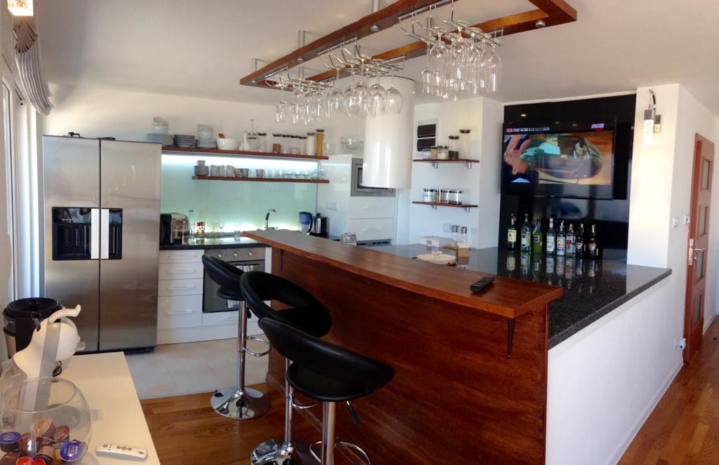 Poziom drugi - imponujący salon, połączony z nowoczesną kuchnią, zapewnia idealną przestrzeń do rozrywki i relaksu. Na tym piętrze znajduje się druga łazienka, a także przestronny taras wyposażony w jacuzzi, z którego można podziwiać spektakularne widoki na morze.