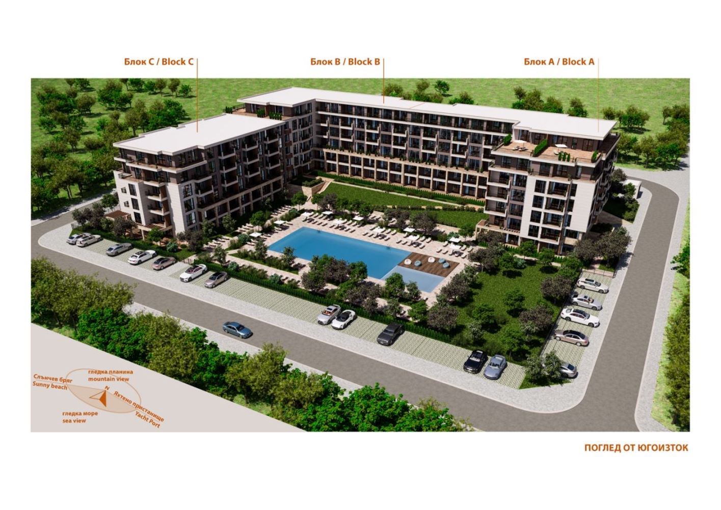 Der Komplex befindet sich in einem der begehrtesten Küstenresorts – der Stadt Sveti Vlas, am Fuße des Balkangebirges. Dieser Ort bietet eine einzigartige Kombination aus Meer- und Bergklima, Ruhe und hervorragender Infrastruktur, die das Leben hier das ganze Jahr über angenehm und komfortabel macht. Dank guter Verkehrsanbindungen sind der Zugang zum Strand, zum Zentrum und zu benachbarten Resorts leicht und schnell mit dem Auto, zu Fuß oder mit dem Fahrrad möglich, was den Komfort und den Wert der Immobilie zusätzlich erhöht.