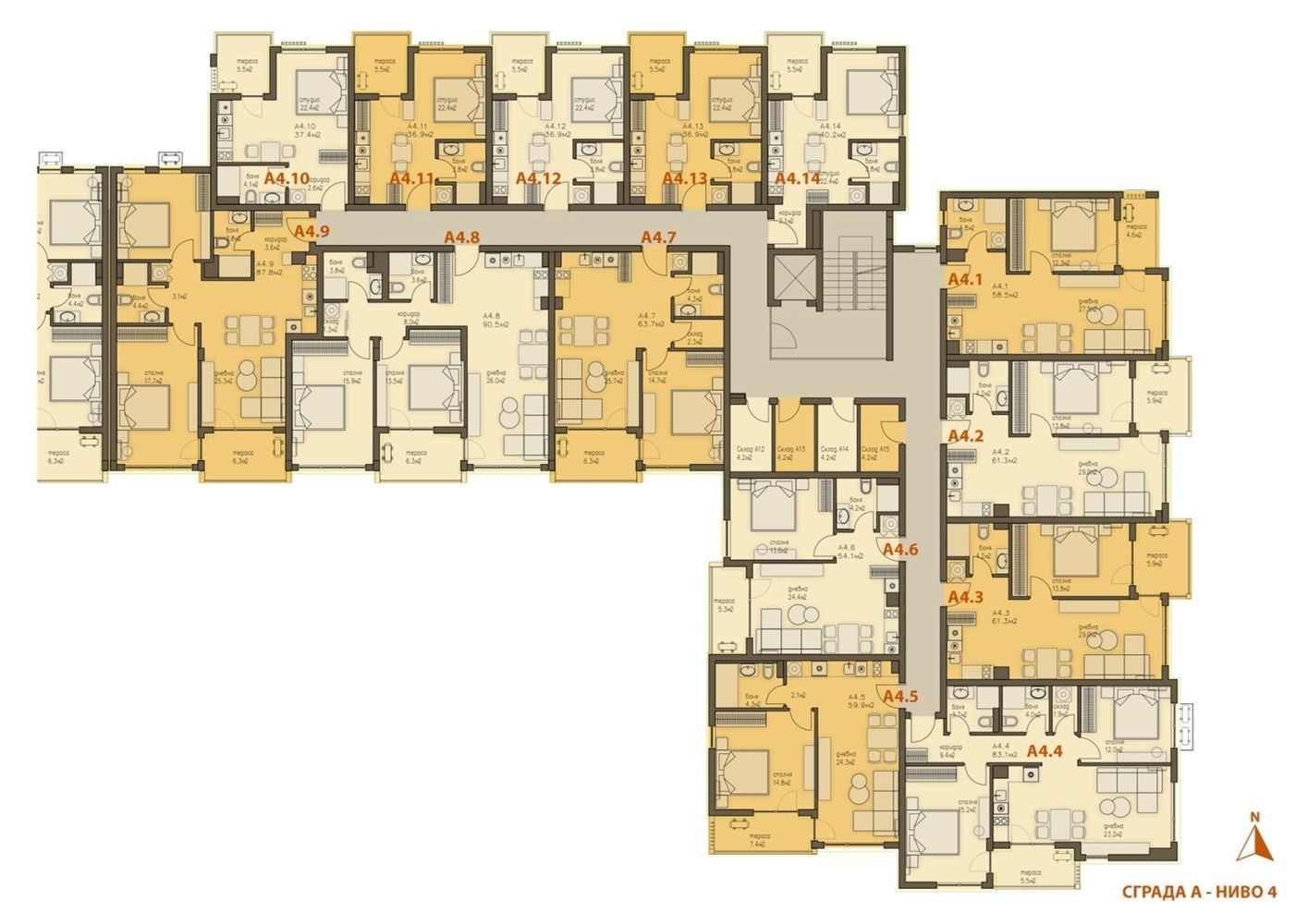 Der Wohnkomplex ist ein geschlossener Typ und besteht aus drei Gebäuden – A, B und C, mit fünf und sechs Stockwerken, in denen Studios, Ein- und Zwei-Zimmer-Wohnungen angeboten werden. Das Projekt zielt darauf ab, eine hochwertige Wohnumgebung zu schaffen, die sowohl für den persönlichen Gebrauch als auch als Investition mit hohem Vermietungspotenzial geeignet ist.