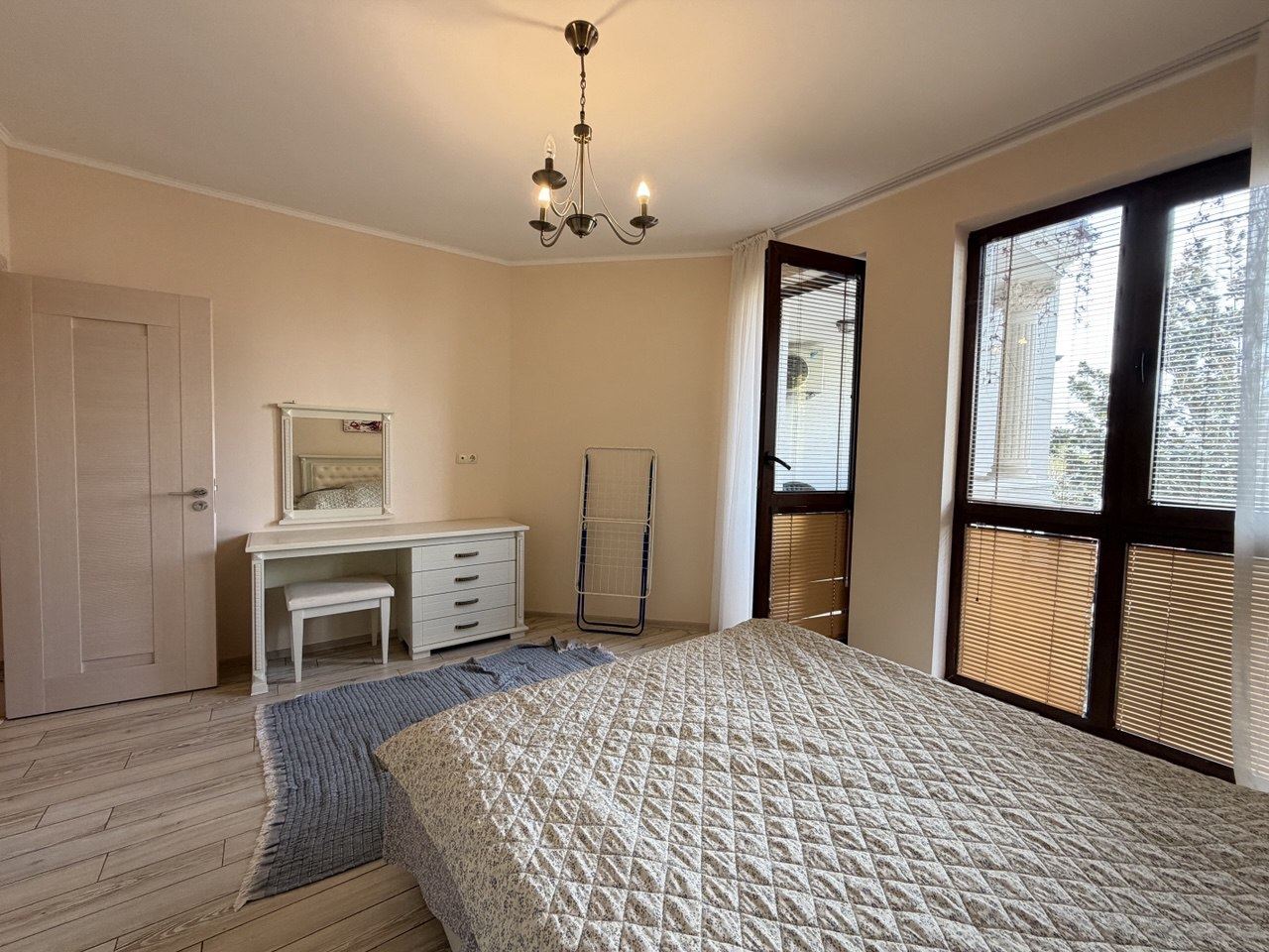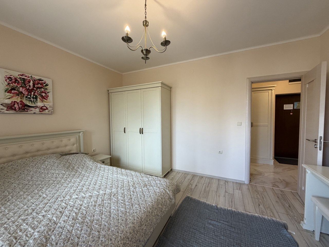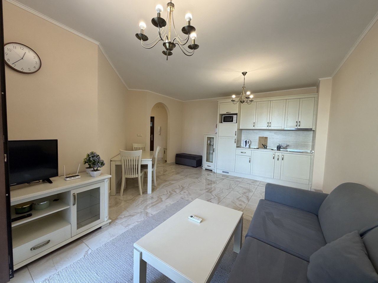 Die Wohnung besticht durch einen hellen und großzügigen Wohnbereich, der nahtlos mit einer Küchenzeile verbunden ist und ein gemütliches, offenes Raumgefühl für Leben, Entspannung und Unterhaltung schafft. Das Schlafzimmer ist mit Blick auf Komfort und Details gestaltet, das Badezimmer modern und funktional. Besonders hervorzuheben ist der Balkon mit schöner Aussicht auf die Gärten und Wasserflächen des Komplexes, perfekt für Morgenkaffee oder abendliche Entspannung.
