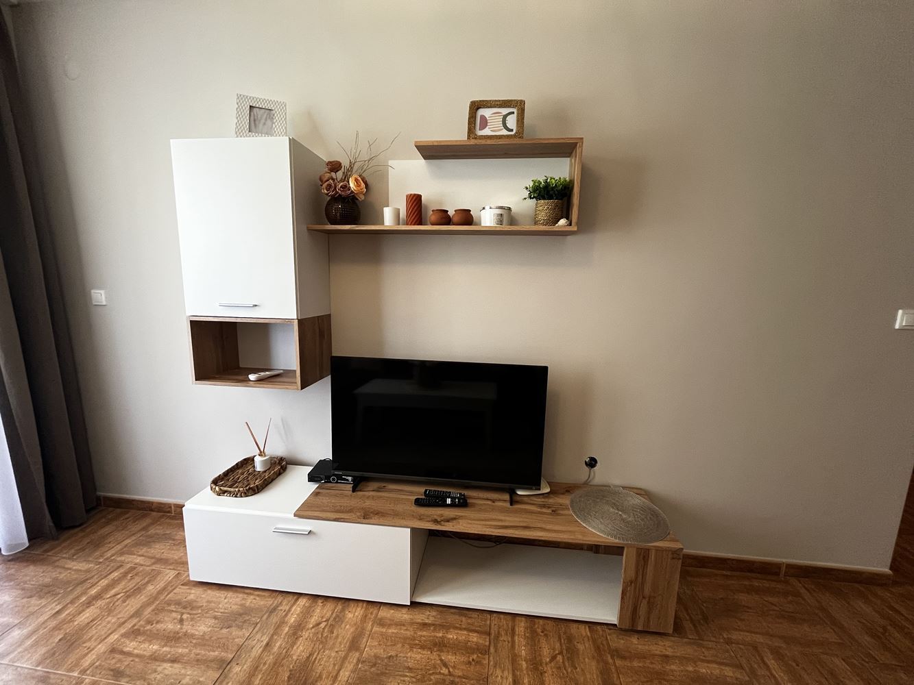 Die Wohnung verfügt über einen funktionalen und praktischen Grundriss – sie umfasst ein separates Schlafzimmer und ein geräumiges Wohnzimmer mit Küchenzeile, das eine gemütliche Wohnzone für Entspannung, Essen und Unterhaltung bietet. Die Wohnung ist vollständig möbliert und bezugsfertig und bietet moderne Ausstattung und sorgfältig ausgewählte Möbel, die Stil und Komfort kombinieren. Zur Ausstattung gehören zwei Klimaanlagen, ein Badezimmer mit WC und eine große Terrasse, von der aus Sie die Meersicht und Sonnenuntergänge genießen können.