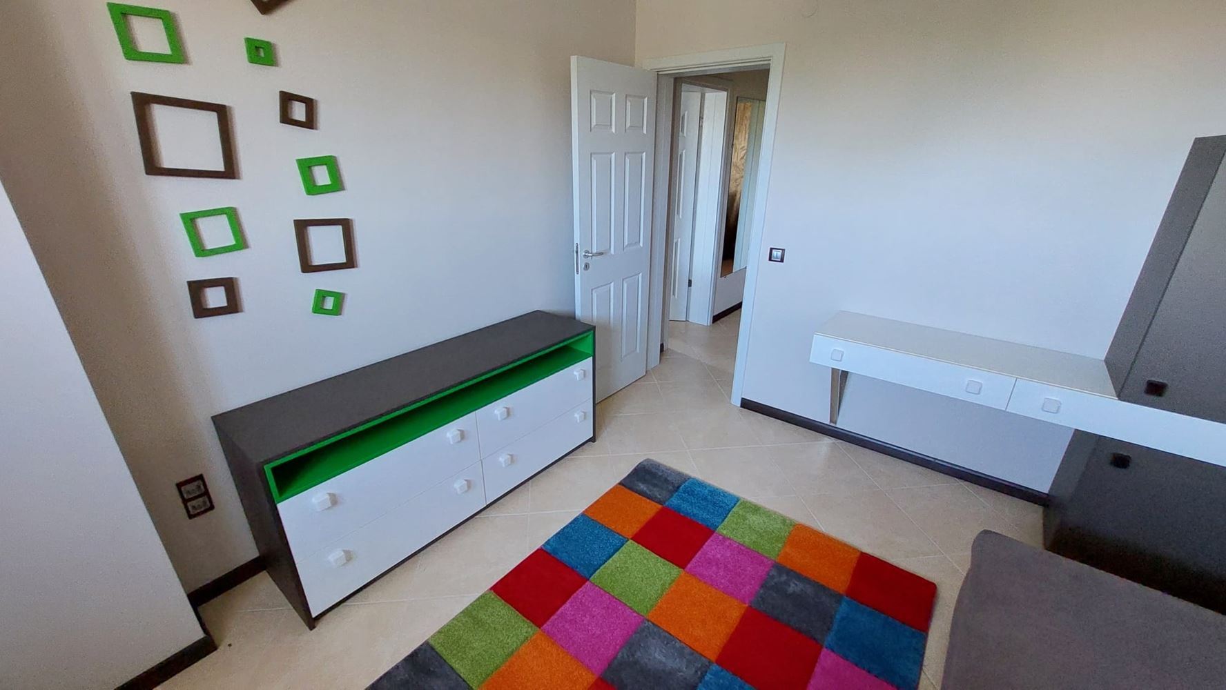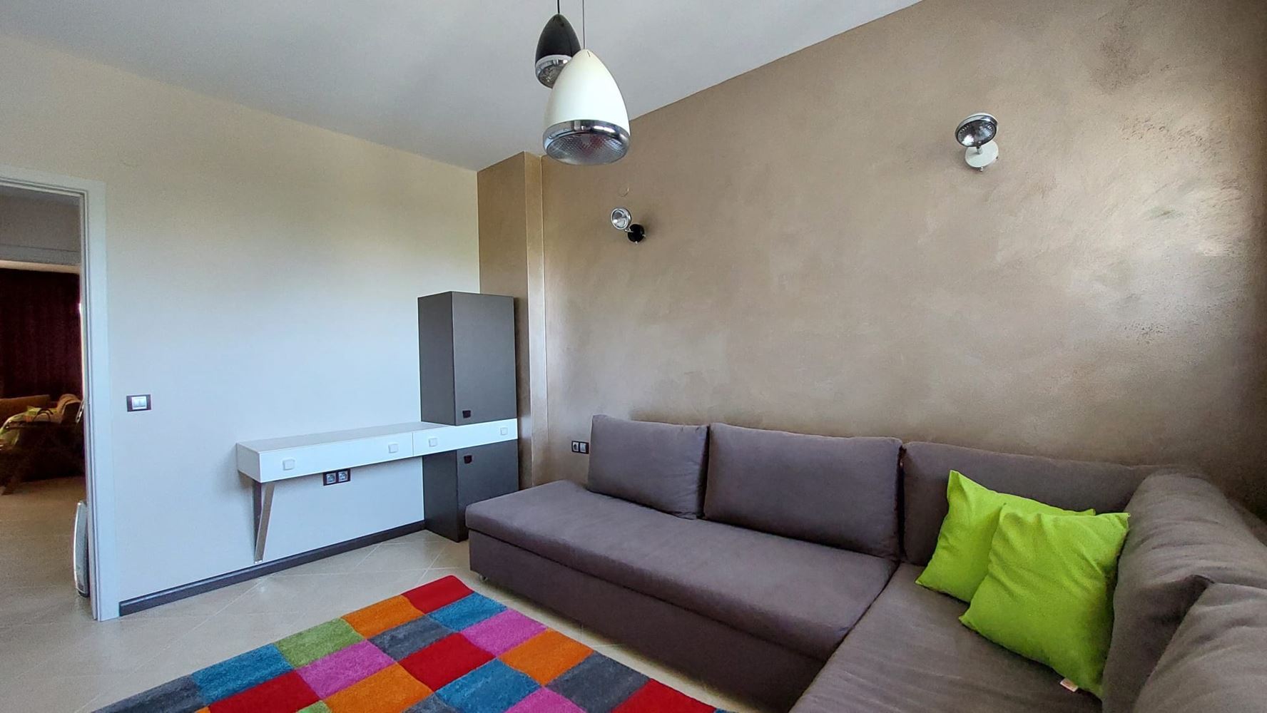 Die Wohnung ist modern und stilvoll möbliert, mit Liebe zum Detail und der Verwendung hochwertiger Materialien. Die Raumaufteilung ist äußerst funktional und komfortabel – ein großzügiges Wohnzimmer mit Küche und Essbereich, lichtdurchflutet und mit Zugang zu einer breiten Terrasse, ideal für Entspannung und Abende am Meer. Die zwei Schlafzimmer sind separat und gemütlich, jeweils mit eigener Terrasse, die Privatsphäre und Ruhe bietet. Zur Wohnung gehören zwei moderne Badezimmer mit Toiletten, elegant gestaltet und vollständig ausgestattet.