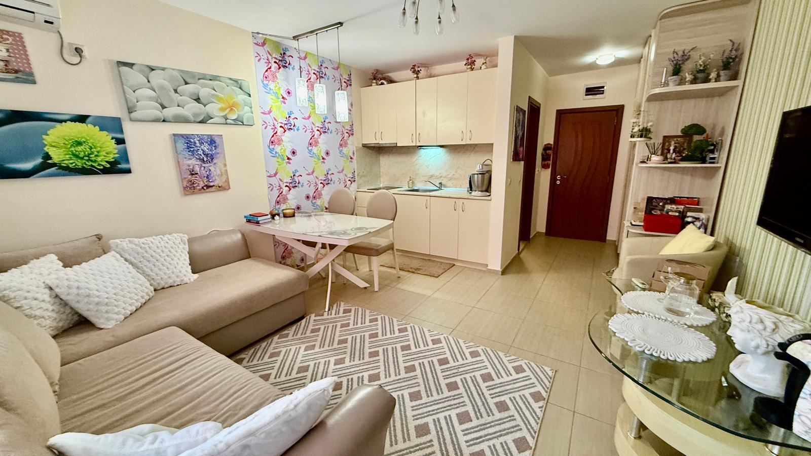 Die Anlage ist von höchster Klasse und bietet eine vollständige Palette an Dienstleistungen und Annehmlichkeiten, vergleichbar mit einem Fünf-Sterne-Hotel. Den Eigentümern und Gästen steht ein elegantes Restaurant mit bulgarischer und internationaler Küche zur Verfügung, das über eine beeindruckende Terrasse mit Meerblick verfügt und unvergessliche Ausblicke bietet. Für vollständige Erholung und Entspannung bietet die Anlage einen Swimmingpool mit Poolbar, ein Spa- und Wellnesszentrum, Whirlpool, Sauna, Massageräume und ein Solarium. Für einen aktiven Lebensstil gibt es ein modernes Fitnesscenter, Tischtennis, Billard und Snooker. Familien mit Kindern werden den Kinderbereich mit Animator zu schätzen wissen, der Unterhaltung und Ruhe für die Eltern gewährleistet. Zusätzlichen Komfort bieten die Tiefgarage sowie die professionelle Verwaltung und Wartung der Anlage.