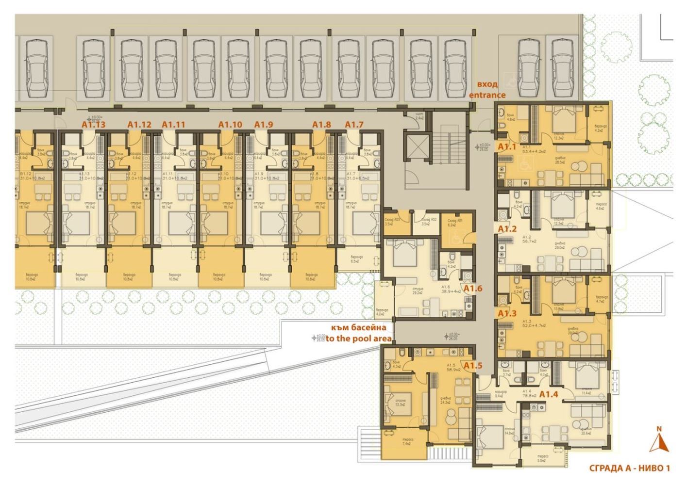 Wir bieten Ihnen eine Zwei-Zimmer-Wohnung mit einer Fläche von 66,23 m², gelegen im ersten Wohngeschoss über dem Erdgeschoss eines neuen luxuriösen Wohnprojekts in Sveti Vlas. Die Immobilie ist Teil eines sechs-stöckigen Gebäudes mit drei Abschnitten, in dem Studios, Ein- und Zwei-Zimmer-Wohnungen angeboten werden, die mit Blick auf Komfort und hohen Lebensstandard gestaltet wurden. Das Projekt zielt darauf ab, einen modernen Wohnkomplex der oberen Klasse zu schaffen, der sowohl für Investitionen als auch für ganzjähriges Wohnen geeignet ist.
