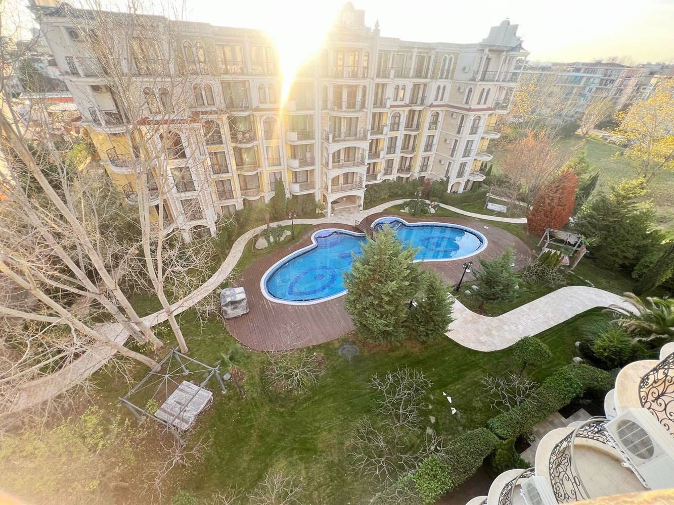 Wir präsentieren eine prächtige Zweizimmerwohnung im sechsten Stock eines der anspruchsvollsten geschlossenen Komplexe in Sonnenstrand. Mit einer Gesamtfläche von 107 m², stilvoll und luxuriös eingerichtet, verbindet diese Immobilie Raum, Komfort und ein gehobenes Wohngefühl – ideal für diejenigen, die ein erstklassiges Ferienhaus oder eine hervorragende Investition suchen.