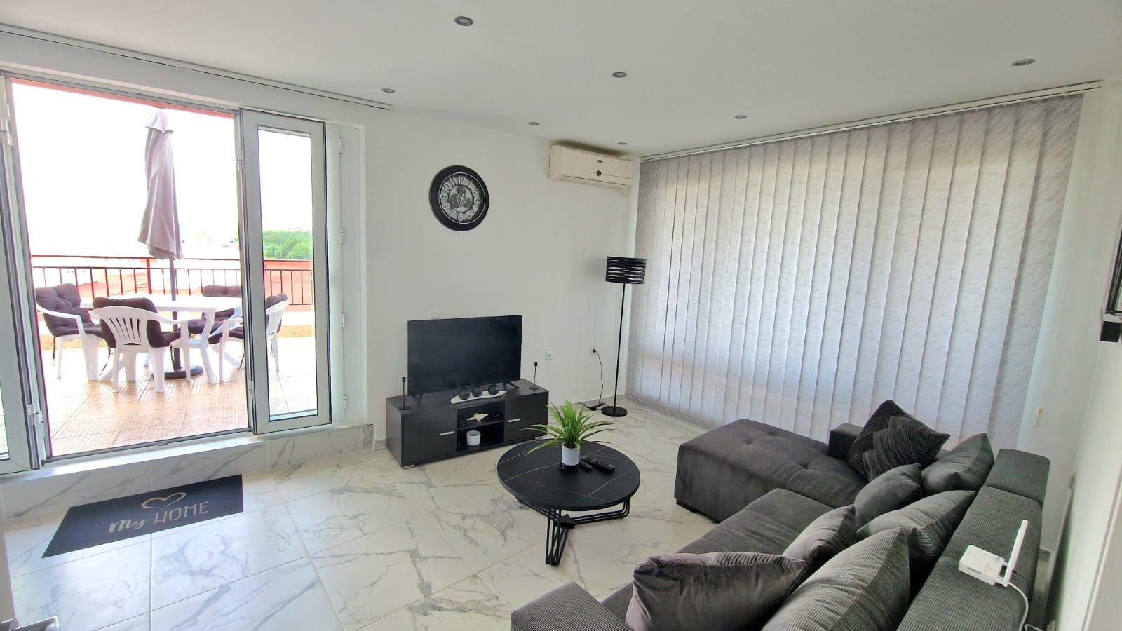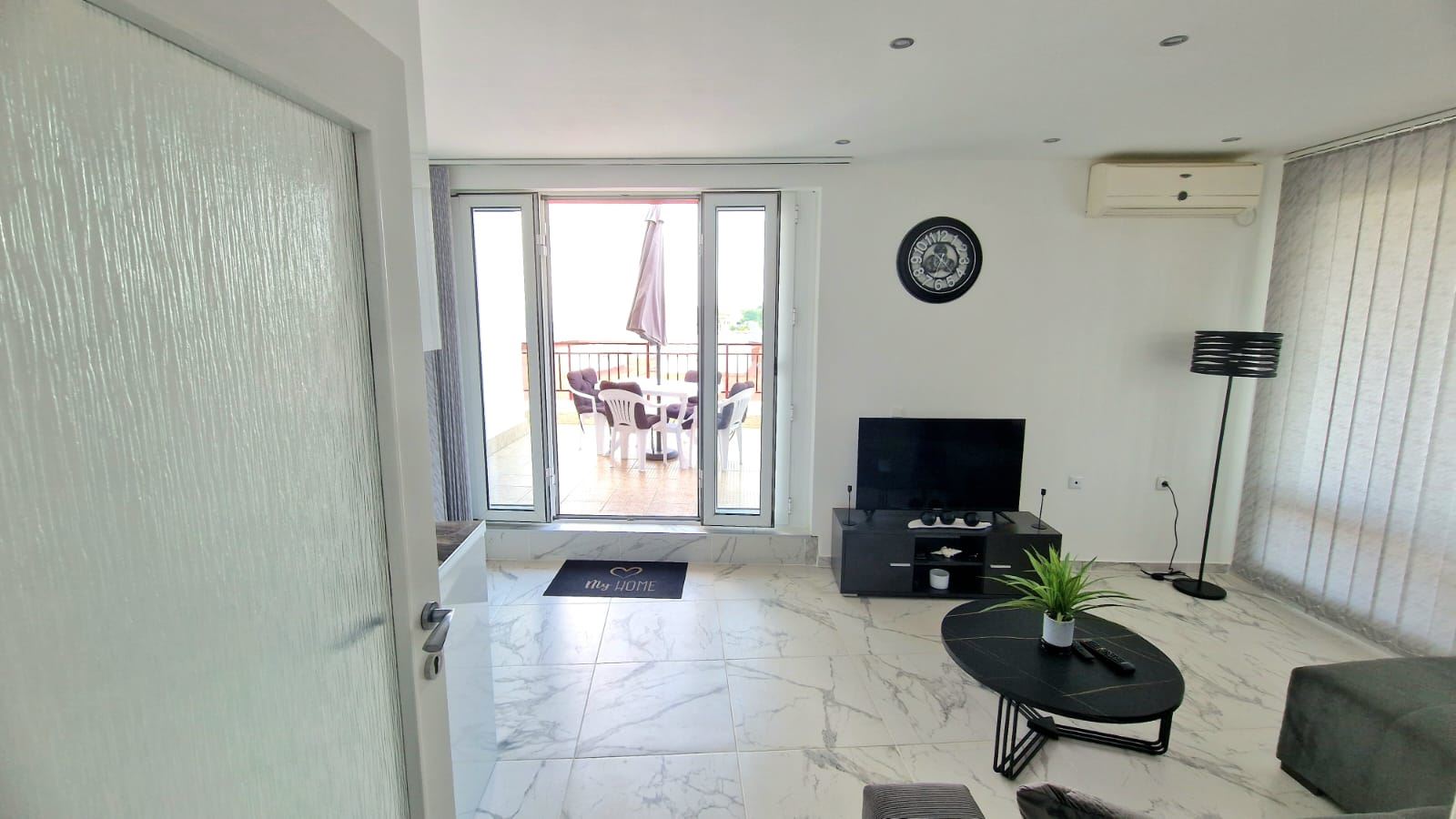 Die Wohnung ist vollständig renoviert, mit neuen Möbeln und moderner Technik ausgestattet, die mit Augenmerk auf Details und Funktionalität ausgewählt wurden. Helle Räume und Panoramafenster sorgen für reichlich natürliches Licht, während die Raumaufteilung eine harmonische Umgebung für Erholung und ganzjähriges Wohnen schafft. Die große Terrasse ist ein idealer Ort für Morgenkaffee mit Meeresaufgang oder abendliche Entspannung bei einer kühlen Brise.