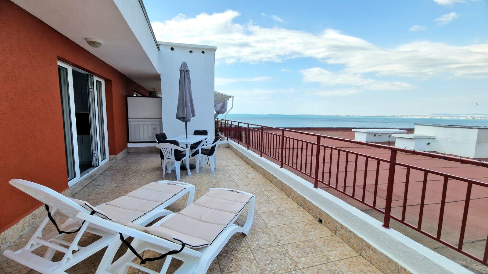 Luxuriöse Zweizimmerwohnung mit großer Terrasse und Meerblick in erster Linie in Sweti Wlas