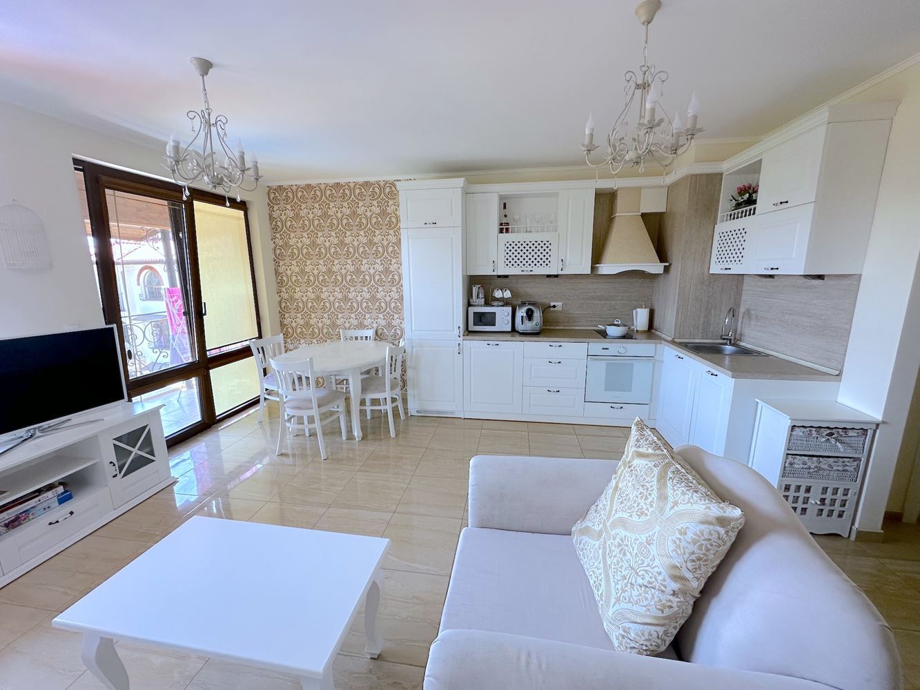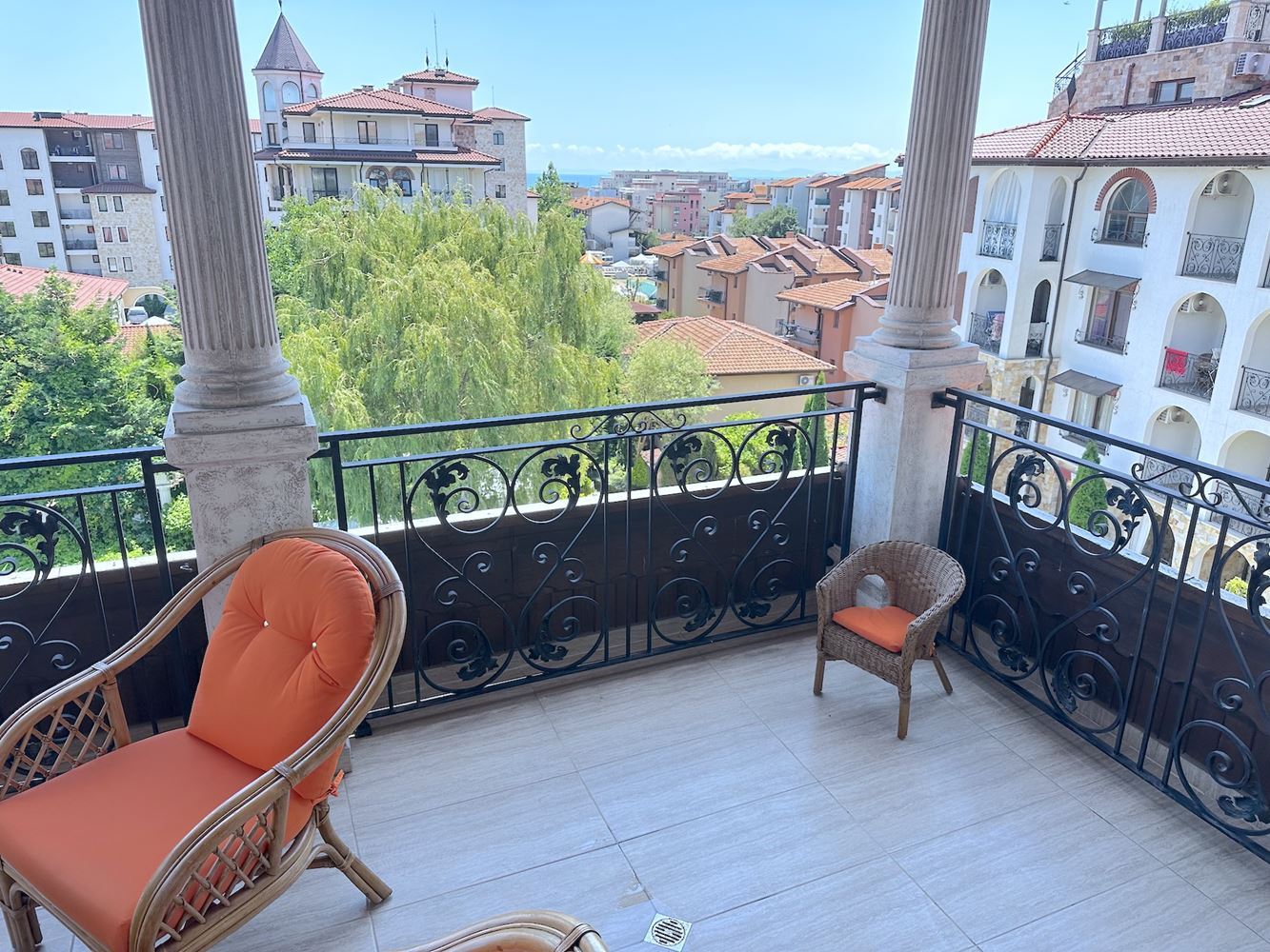 Hiermit bieten wir eine stilvoll eingerichtete Wohnung mit zwei Schlafzimmern und großem Balkon mit Meerblick in einer Luxus-Anlage in Nessebar an!