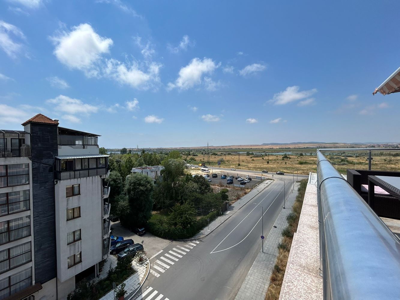 Die Wohnung befindet sich im siebten und obersten Stockwerk und verfügt über eine Gesamtfläche von 87 m² – ein selten großzügiger Grundriss für eine Zweizimmerwohnung in dieser Gegend. Sie umfasst ein helles Wohnzimmer mit Platz für Küche und Essbereich, ein komfortables Schlafzimmer, ein Badezimmer mit WC sowie einen gemütlichen Balkon für entspannte Nachmittage. Die Immobilie ist komplett möbliert und mit allen notwendigen Geräten und Accessoires ausgestattet, was eine Atmosphäre von Gemütlichkeit und Premium-Komfort schafft. Die obere Etage sorgt für zusätzliche Ruhe, ein offenes Raumgefühl und schöne Ausblicke auf die Anlage und Umgebung.
