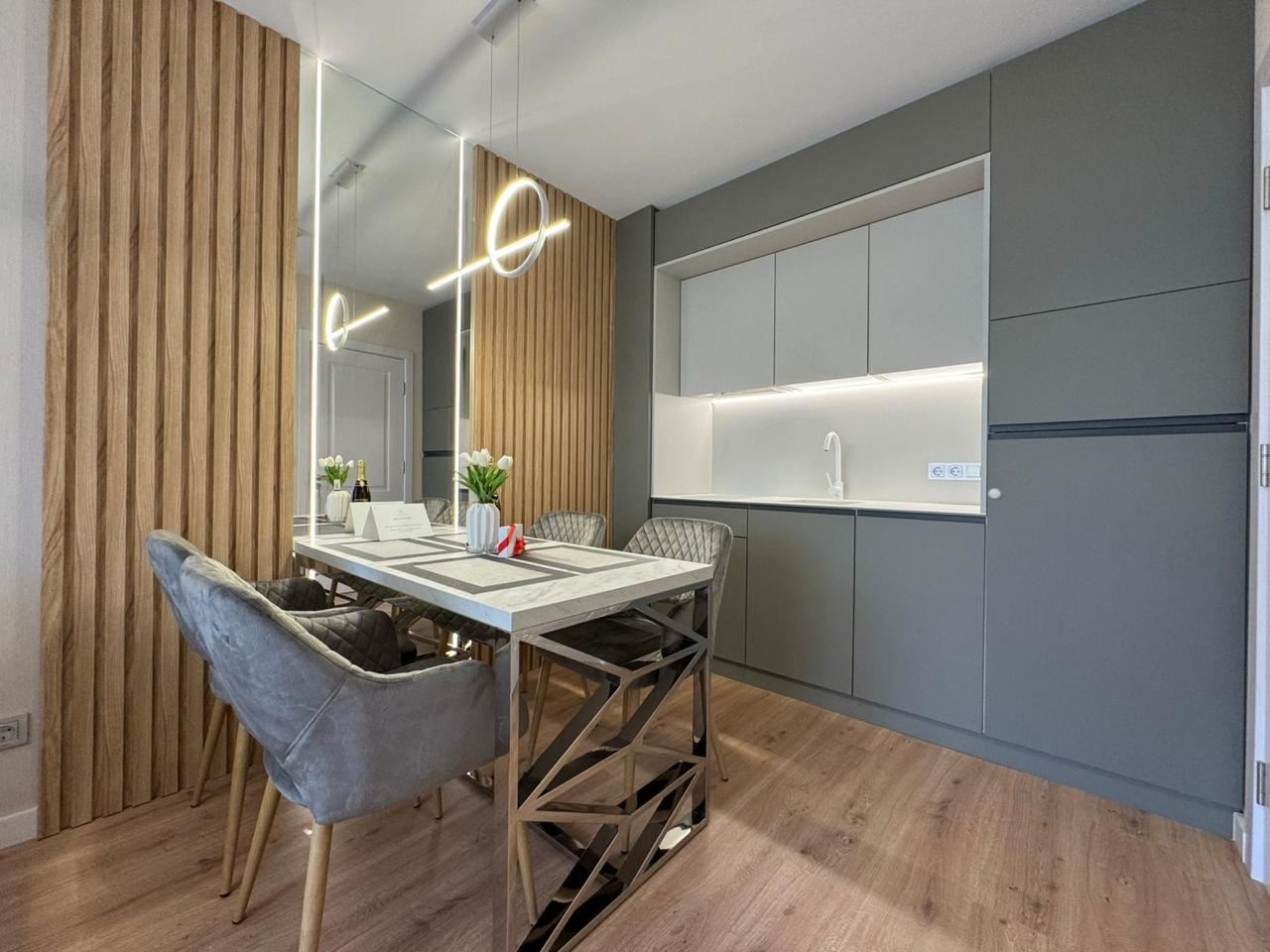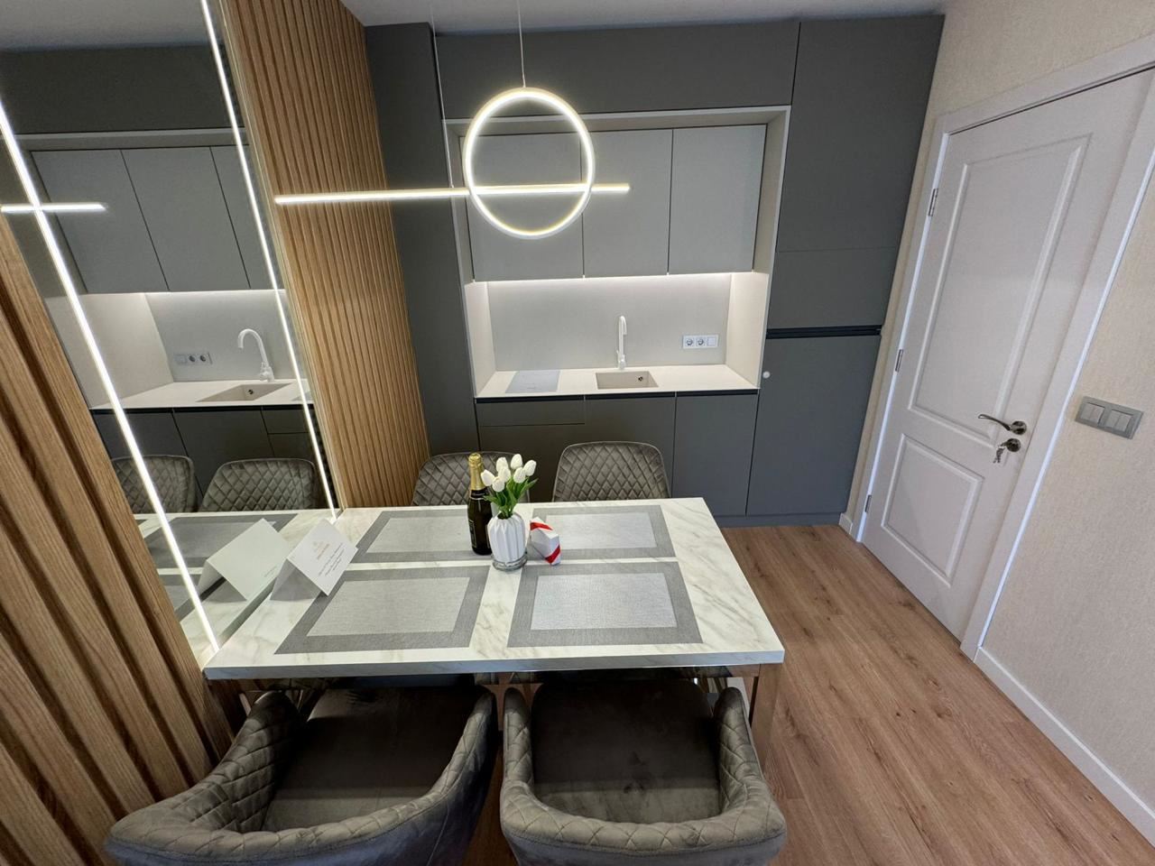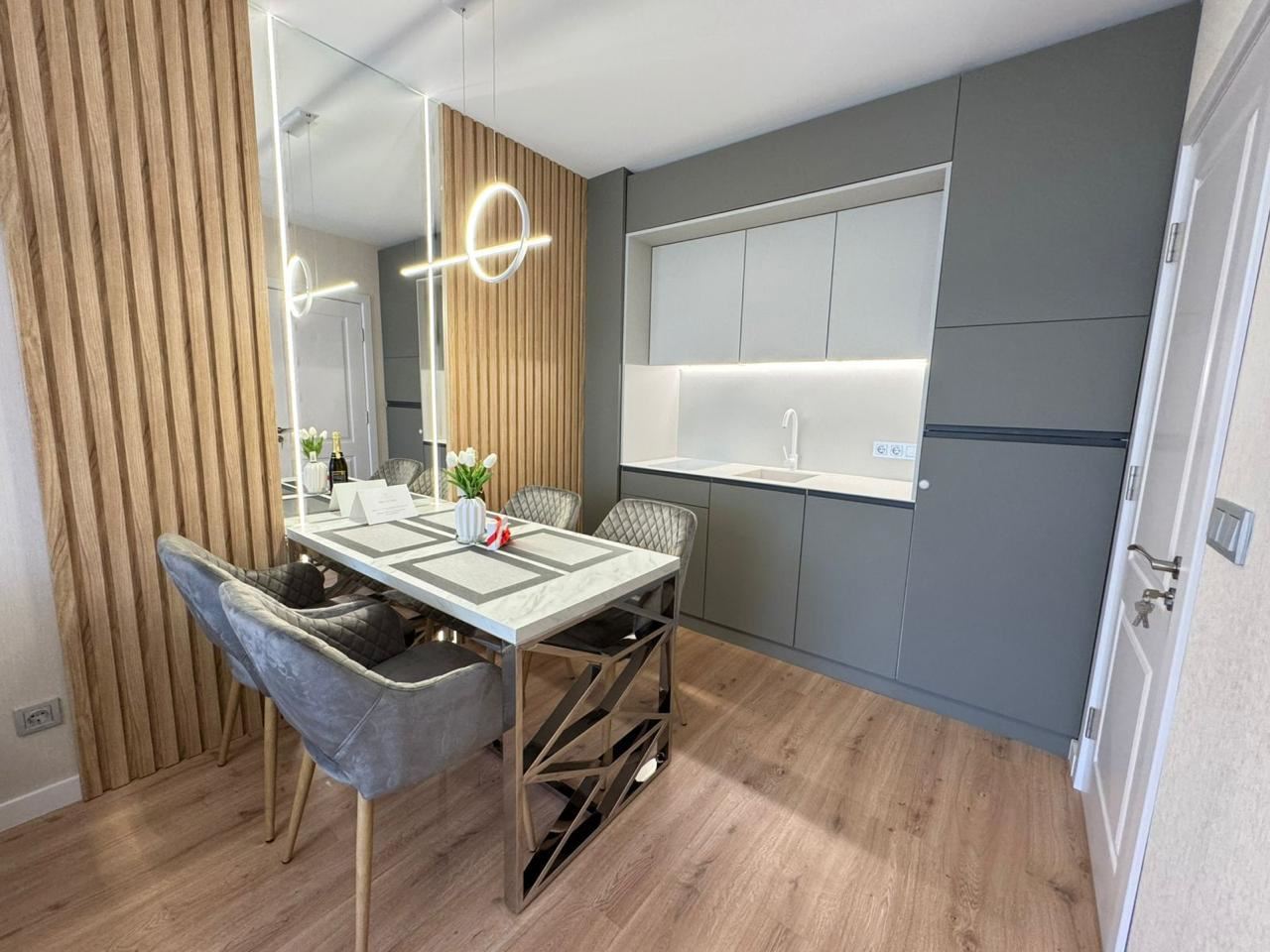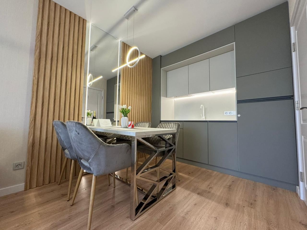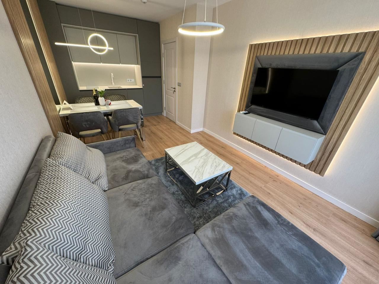 Wir präsentieren eine Luxuswohnung mit einer Gesamtfläche von 57 m², gelegen im vierten Stock eines modernen, geschlossenen Clubkomplexes mit Akt 16, nur 500 Meter vom Meer entfernt. Die Immobilie vereint Eleganz, Komfort und eine prestigeträchtige Lage und ist damit eine ausgezeichnete Wahl als Ferienimmobilie, für ganzjähriges Wohnen oder als Investition mit hohem Potenzial.