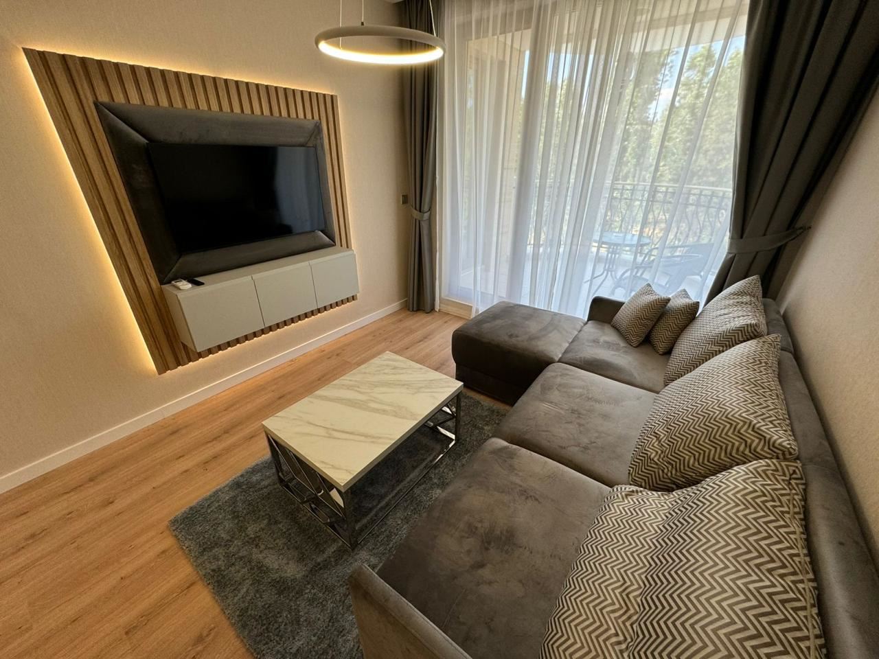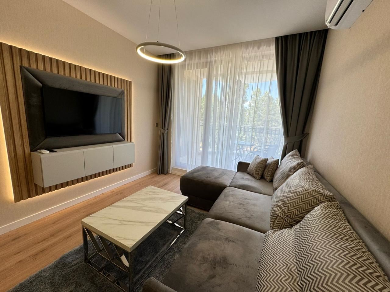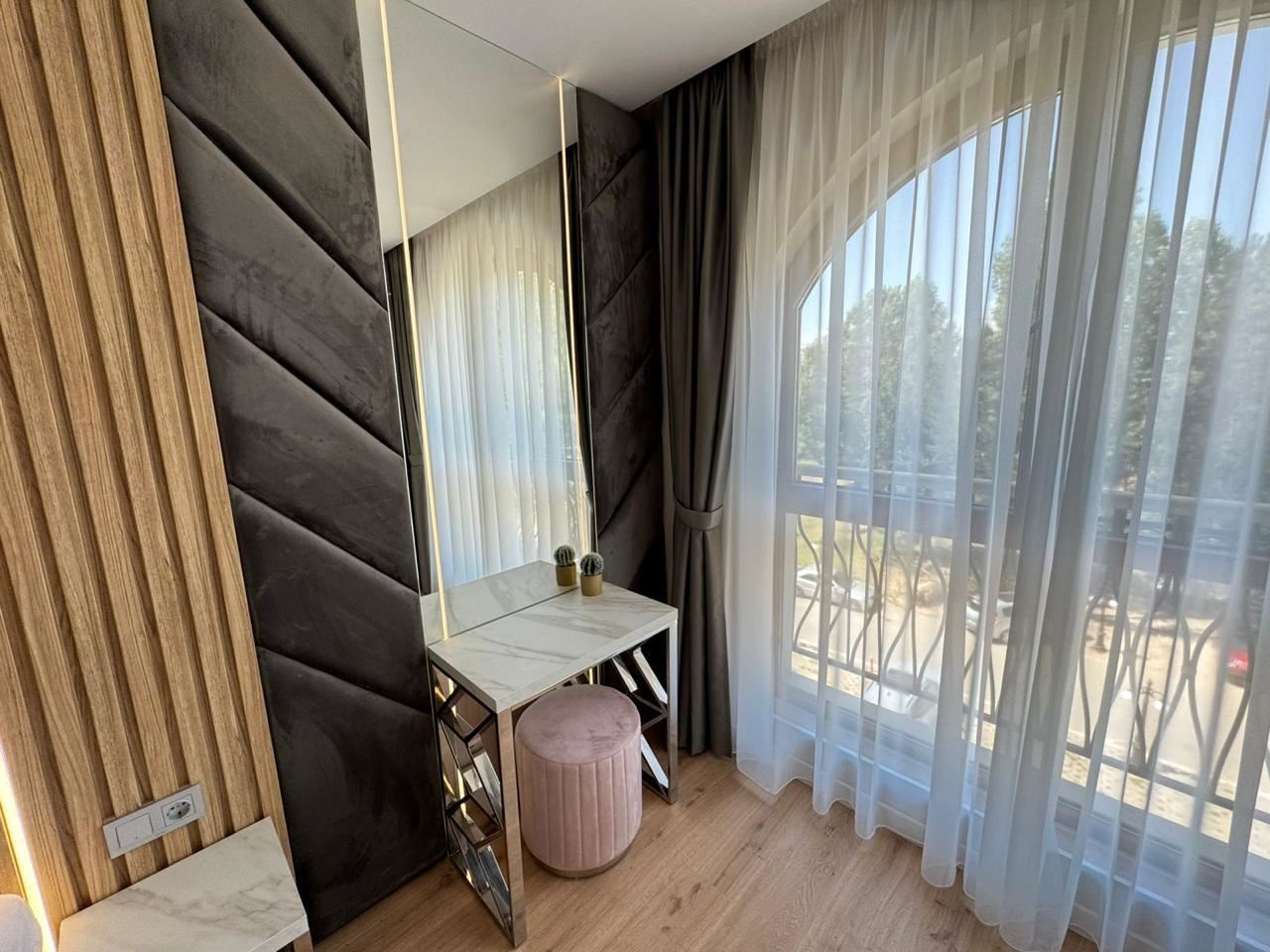 Der Komplex ist von viel Grün umgeben, mit schön angelegten Wegen, dekorativen Pflanzen und gemütlichen Ruhebereichen. Die Atmosphäre ist ruhig und harmonisch – ideal für Menschen, die dem Alltag entfliehen möchten, ohne auf die Annehmlichkeiten einer Ferieninfrastruktur zu verzichten. Die unmittelbare Nähe zu einem großen Park bietet zusätzliche Möglichkeiten für Spaziergänge, Sport im Freien und Entspannung in der Natur.