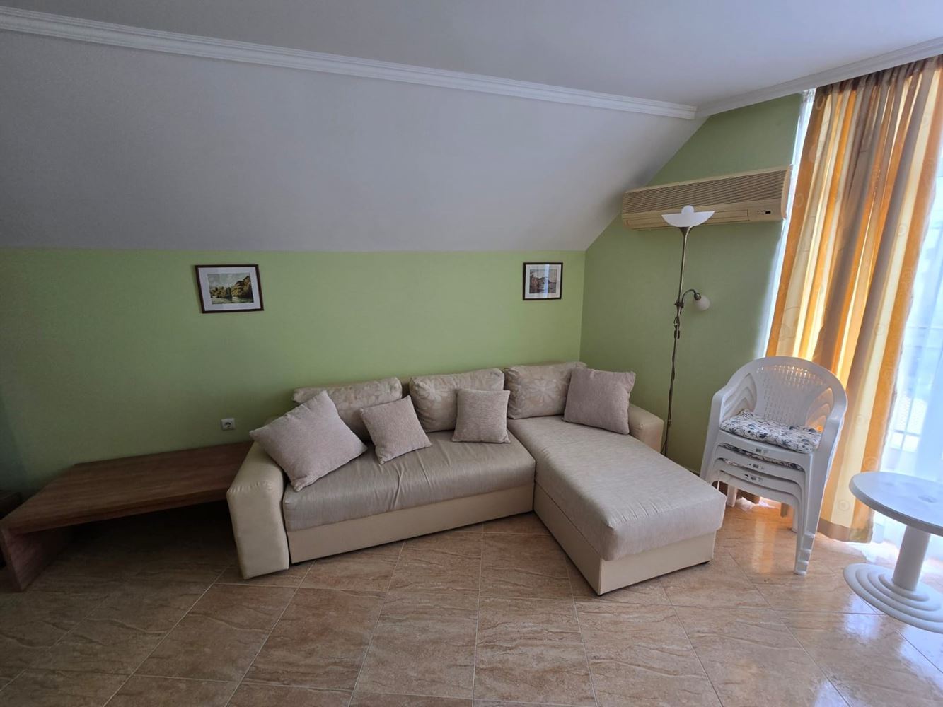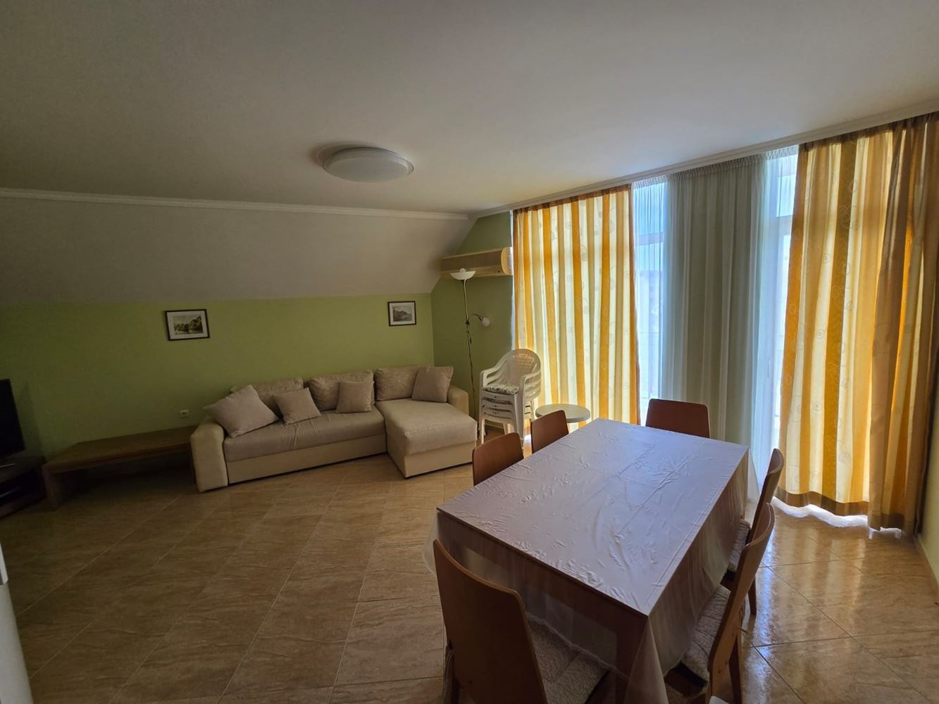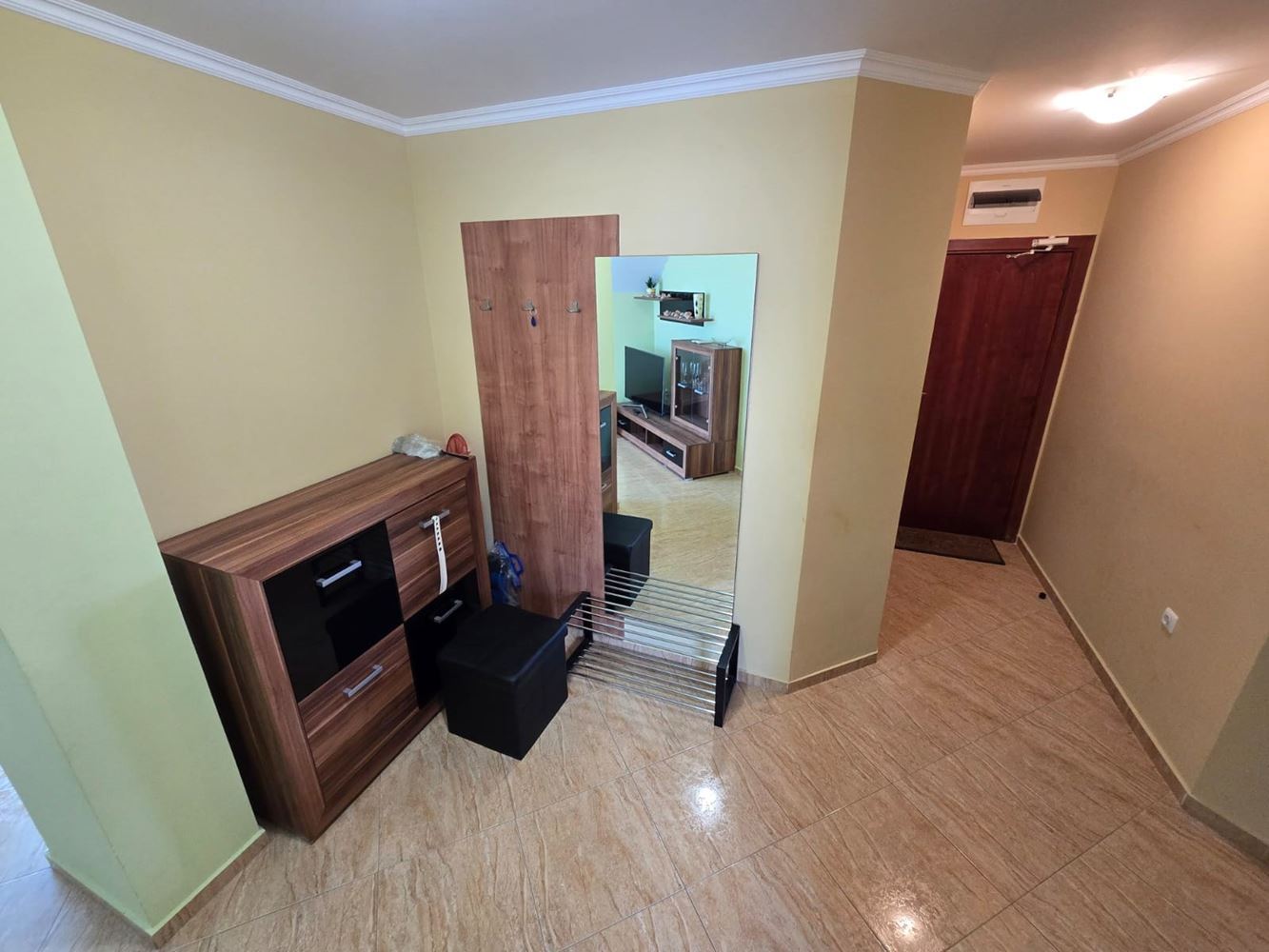 Wir präsentieren eine attraktive Drei-Zimmer-Wohnung mit einer Gesamtfläche von 86 m², gelegen in einem der am besten gepflegten Komplexe in Sonnenstrand. Die Immobilie wird vollständig möbliert und ausgestattet verkauft und ist sofort bezugsfertig – ideal als Ferienwohnung, für ganzjähriges Wohnen oder als Investition. Die Wohnung bietet eine funktionale Aufteilung mit insgesamt drei Zimmern: geräumiger Wohnbereich, zwei separate Schlafzimmer, zwei Badezimmer und zwei praktische Balkone, die angenehmen Außenbereich für Entspannung bieten. Ein Aufzug sorgt für Komfort und einfachen Zugang für Eigentümer und Gäste.