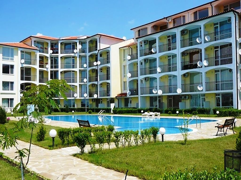 Möblierte Wohnung mit zwei Schlafzimmern in einer bewachten Anlage, ca. 200 m vom Strand in Ravda entfernt. Die Wohnung mit einer Fläche von 78 qm befindet sich auf der vierten Etage und besteht aus Flur, Wohnzimmer mit Küche, zwei Schlafzimmern, Bad mit WC und einem Balkon mit Meerblick. Die Wohnung wird mit allen Möbeln und Geräten verkauft. Ausstattung der Anlage: Außenpool, Kinderbecken, Spielplatz, Restaurant, Cafe-Bar, Sicherheit, Parkplatz.