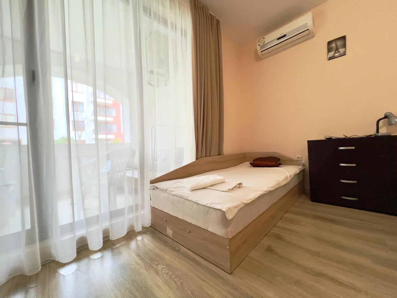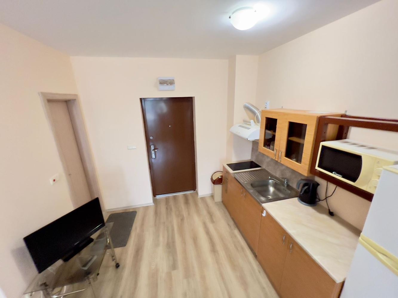 Möbliertes Studio im Ferienort Nessebar in einer modernen, geschlossenen Anlage. Die Wohnung befindet sich nur 200 Meter vom Strand und dem Meer. Die Anlage befindet sich in der Nähe von vielen Annehmlichkeiten wie Cafés, Geschäften, Restaurants, Bars und einer Haltestelle der öffentlichen Verkehrsmittel. Die Anlage bietet eine Reihe von Annehmlichkeiten wie einen gemütlichen Park mit Sitzgelegenheiten, einen Außenpool mit Ruhebereich, Parkplätze und einen Kinderspielplatz. Die Verwaltungsgesellschaft ist ganzjährig vor Ort erreichbar. Die Wohnung hat eine Gesamtfläche von 43 m² und bietet eine komfortable Aufteilung mit einem eigenen Schlaf-/Ruhebereich und einer Küchenzeile. Außerdem gibt es einen Balkon und ein Bad mit Dusche. Die Wohnung wird möbliert und ausgestattet verkauft, so dass sie sofort bezugsfertig ist. Dadurch entfallen die zusätzlichen Kosten für Einrichtung und Ausstattung.