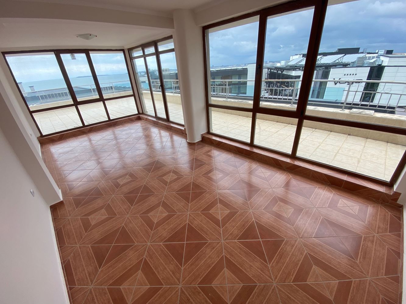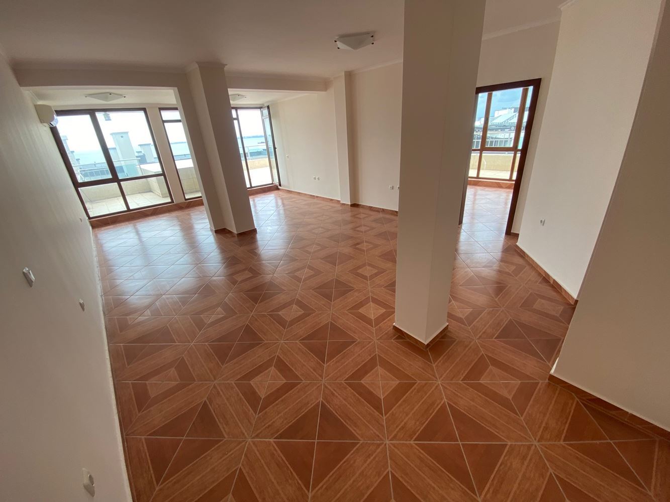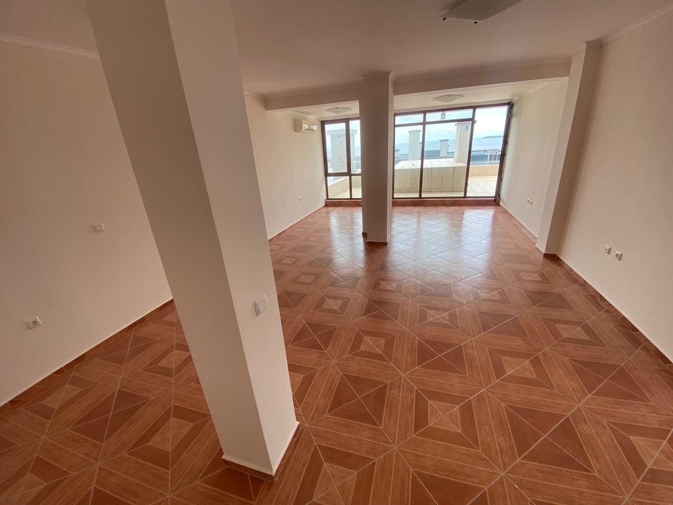 Die Wohnung hat eine Gesamtfläche von 150 qm und liegt im siebten und somit letzten Stock (Aufzug vorhanden). Diese besteht aus einem Flur, einem Wohnzimmer mit Platz für eine Küche (alle Anschlüsse sind vorhanden), drei Schlafzimmern, zwei vollausgestatteten Badezimmern mit WCs und einer riesigen Dachterrasse (96 qm) mit Meerblick.