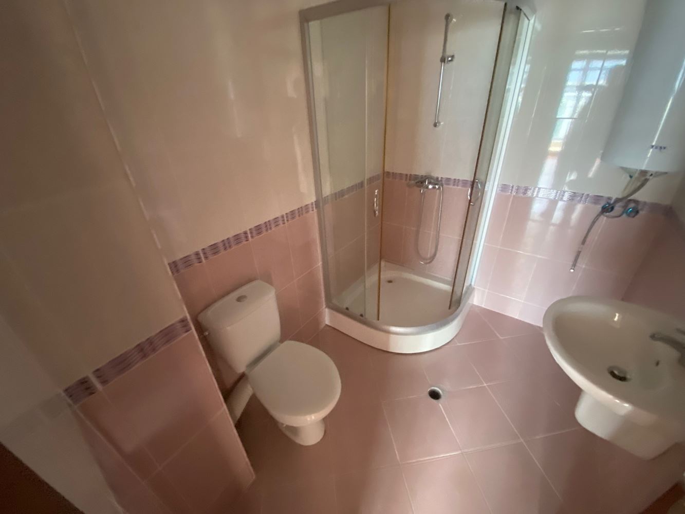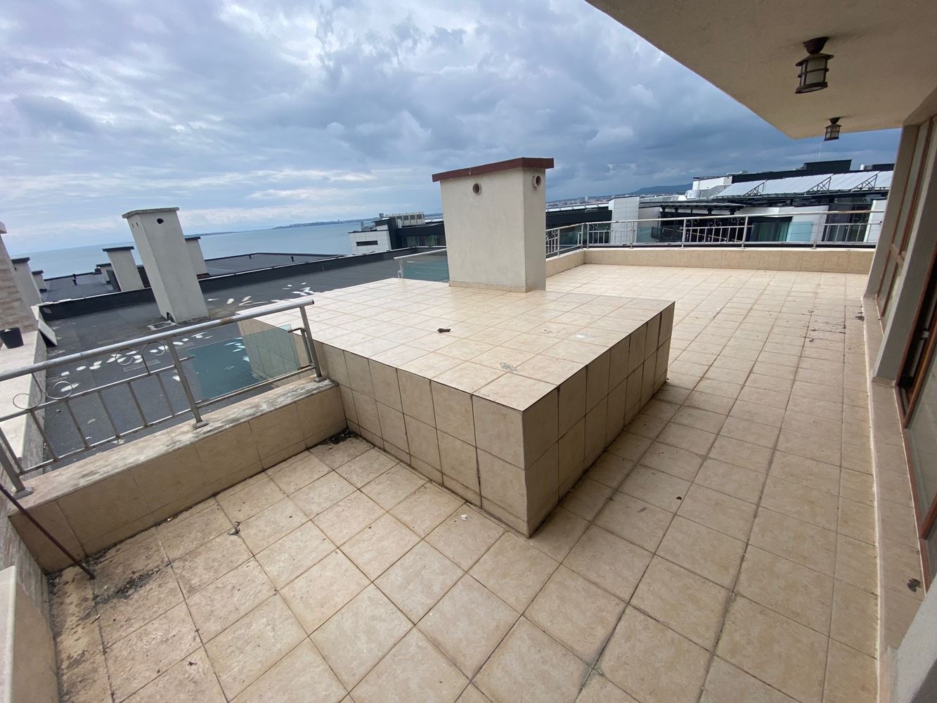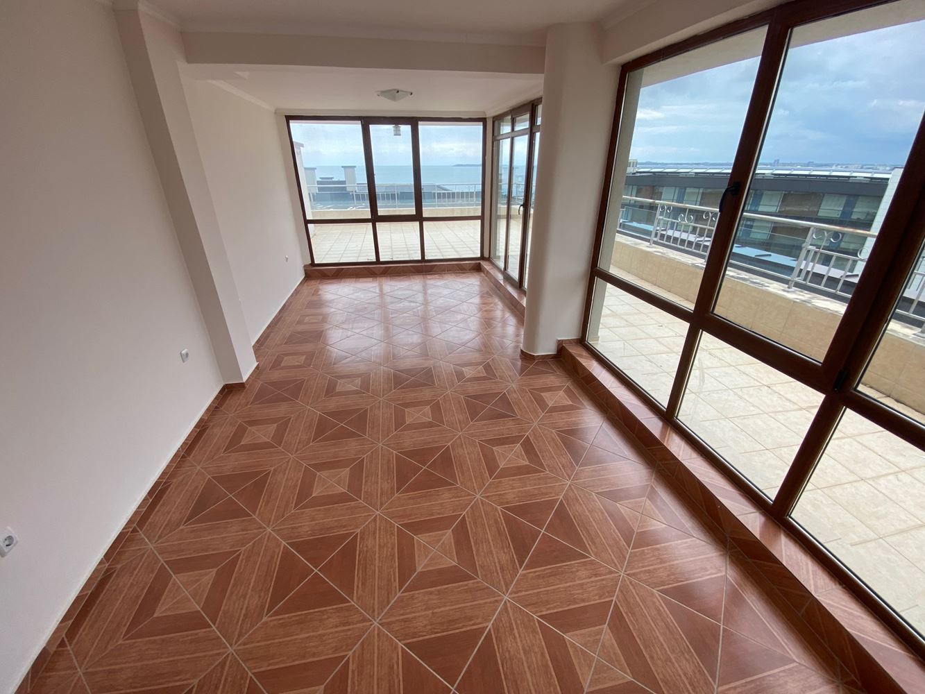 Die Wohnung hat eine Gesamtfläche von 150 qm und liegt im siebten und somit letzten Stock (Aufzug vorhanden). Diese besteht aus einem Flur, einem Wohnzimmer mit Platz für eine Küche (alle Anschlüsse sind vorhanden), drei Schlafzimmern, zwei vollausgestatteten Badezimmern mit WCs und einer riesigen Dachterrasse (96 qm) mit Meerblick.