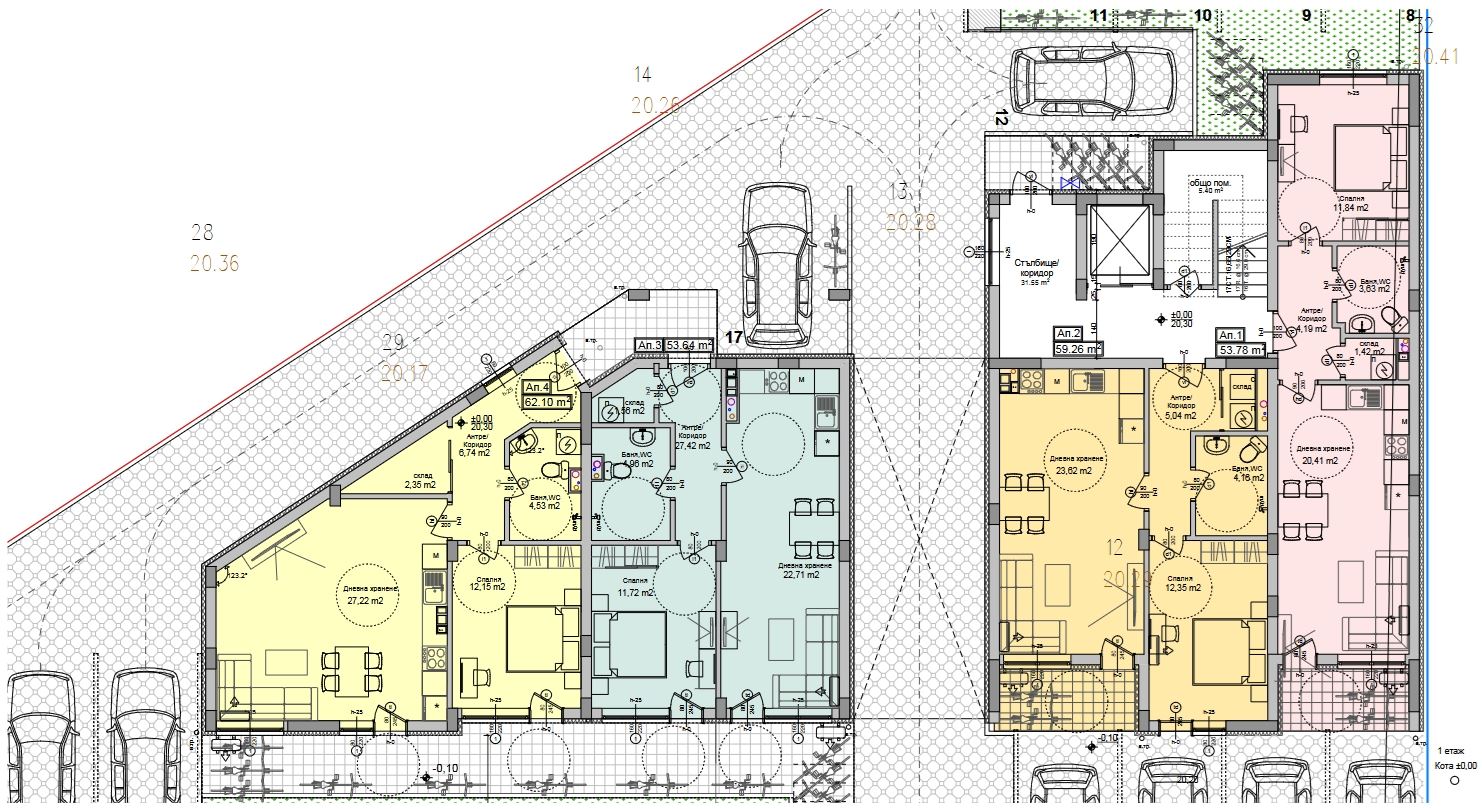 Die Umgebung zeichnet sich durch gepflegte neue Straßen, Straßenbeleuchtung und einen nahegelegenen Park mit Kinderspielplatz, nur 150 Meter vom Gebäude entfernt, aus. Dies bietet Möglichkeiten für Outdoor-Aktivitäten, Sport und Erholung für Kinder und Erwachsene, während eine angenehme und ruhige Atmosphäre erhalten bleibt.