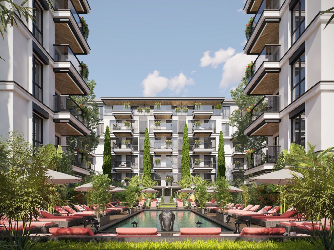 Neue schlüsselfertige Zwei-Zimmer-Wohnung mit Poolblick in einer Anlage in Sunny Beach