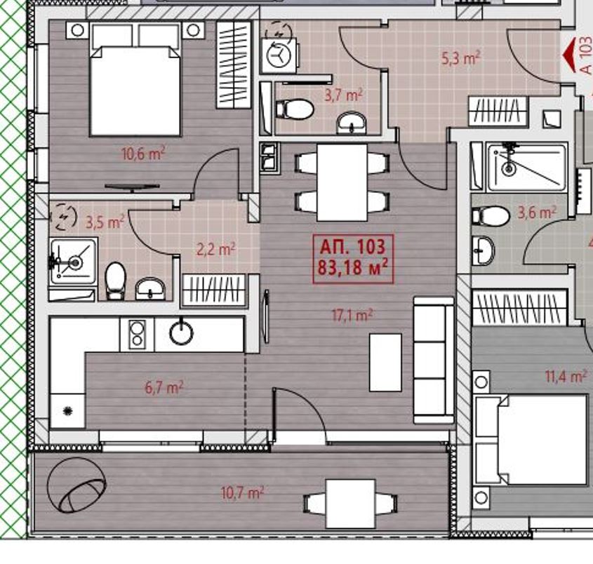 Die Wohnung hat eine Gesamtfläche von 83,18 m² und befindet sich im ersten Stock eines modernen Wohngebäudes, das Ihnen alle notwendigen Annehmlichkeiten ohne belastende Wartungsgebühren bietet. Die Immobilie besteht aus einem geräumigen Wohnzimmer, einem gemütlichen Schlafzimmer mit modernem Badezimmer inklusive WC, einem Hauswirtschaftsraum und einem separaten WC. Der Balkon bietet einen schönen Platz für den Morgenkaffee oder Entspannung im Freien, und ein Aufzug sorgt für zusätzlichen Komfort und einfachen Zugang. Zur Ihrer Bequemlichkeit steht auch ein Kellerraum zur Verfügung, der als Lager genutzt werden kann.
