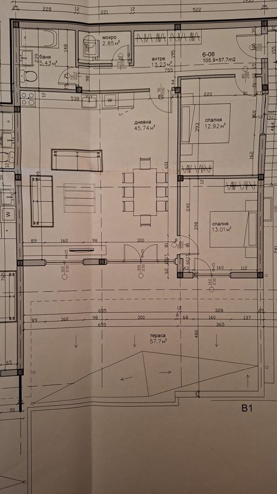 Die Wohnung hat eine Fläche von 172.58 m² und befindet sich im dritten Stock. Sie wird im Rohbauzustand (auf „Tapa“) verkauft, mit der Möglichkeit für Fertigstellungsarbeiten gegen Aufpreis.