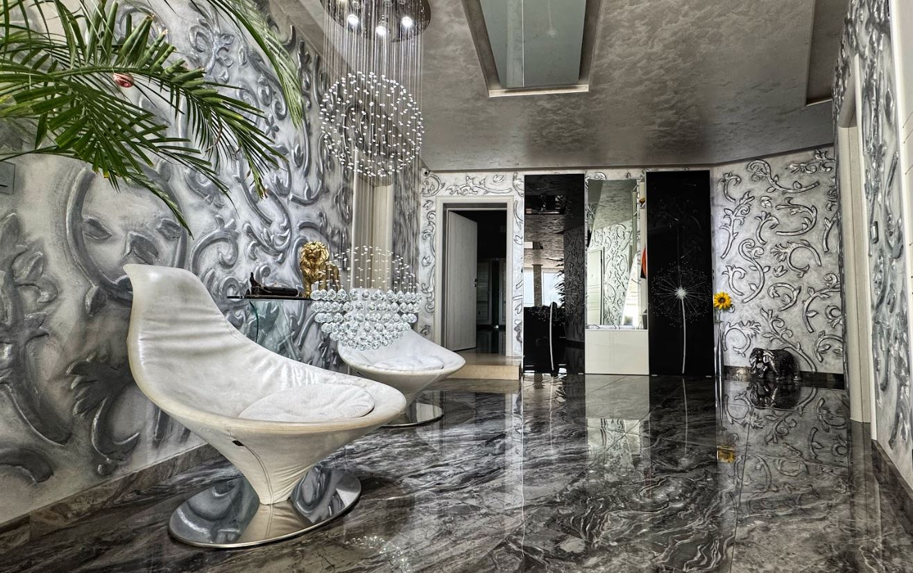 Das Penthouse überzeugt durch eine repräsentative Raumaufteilung: fünf separate Zimmer, darunter vier geräumige Schlafzimmer, vier Badezimmer und zwei Terrassen mit direktem Blick auf das Meer. Der Wohnbereich vermittelt ein Gefühl von Weite, Licht und Freiheit – harmonisch ergänzt durch elegante Akzente und geschmackvolle Einrichtung.