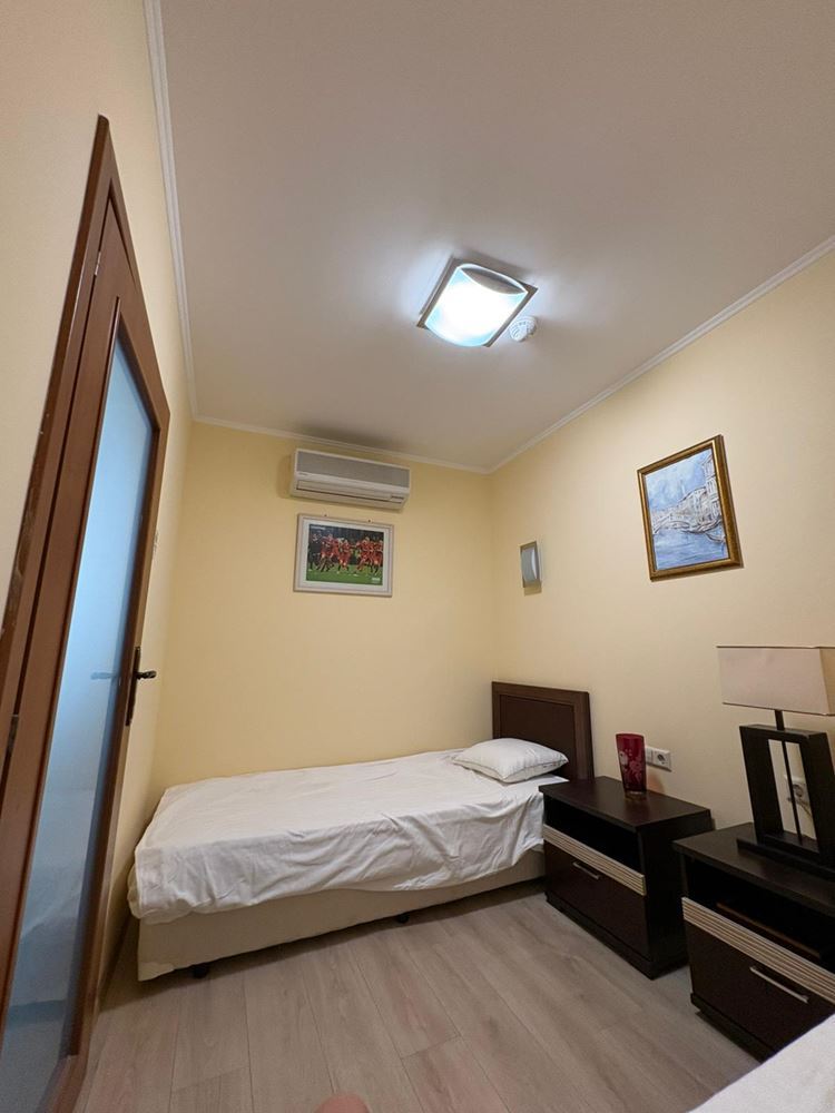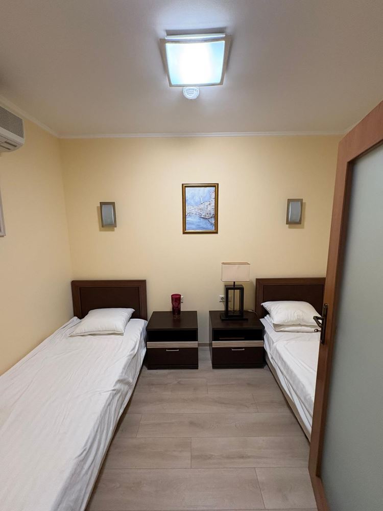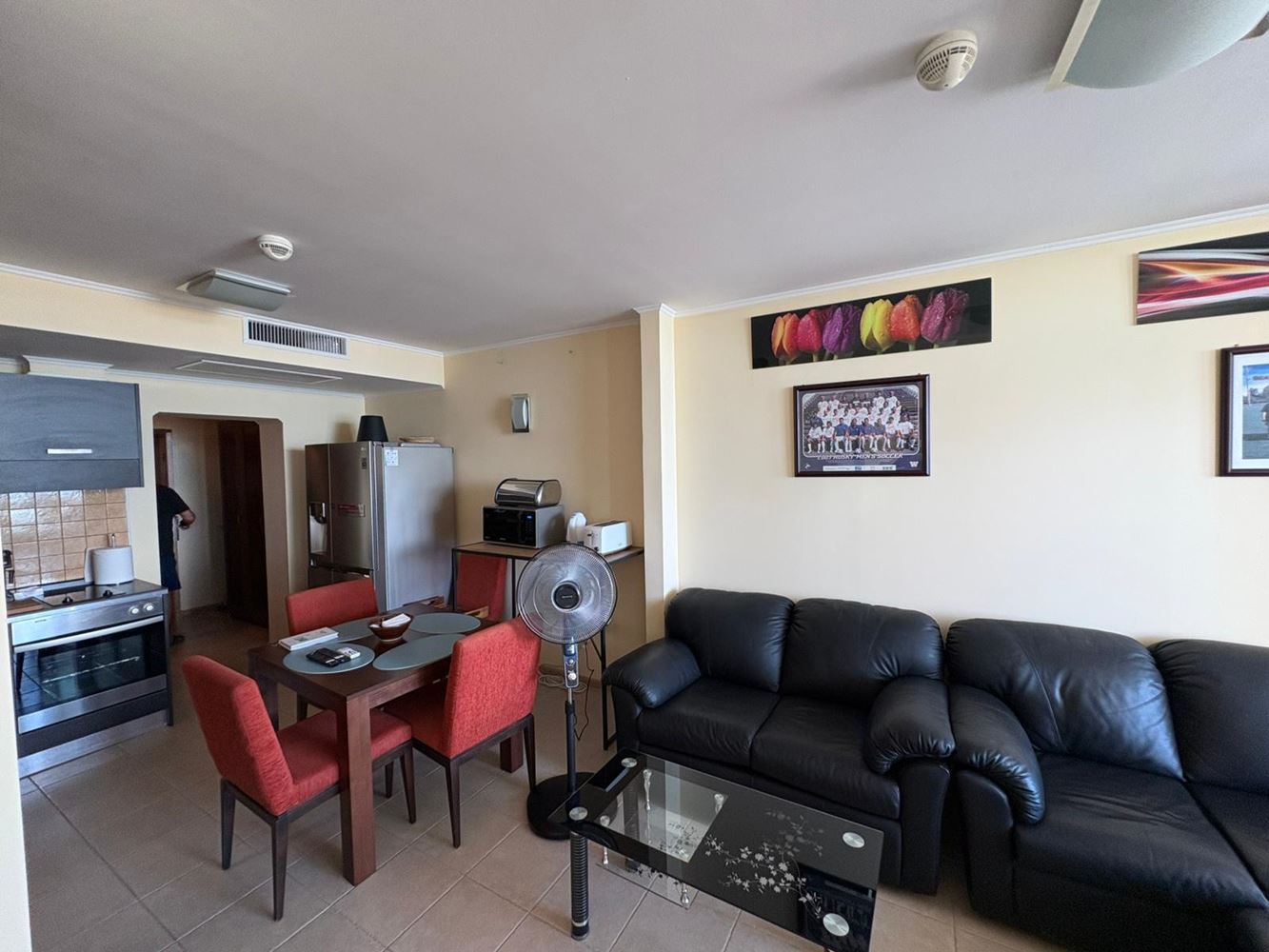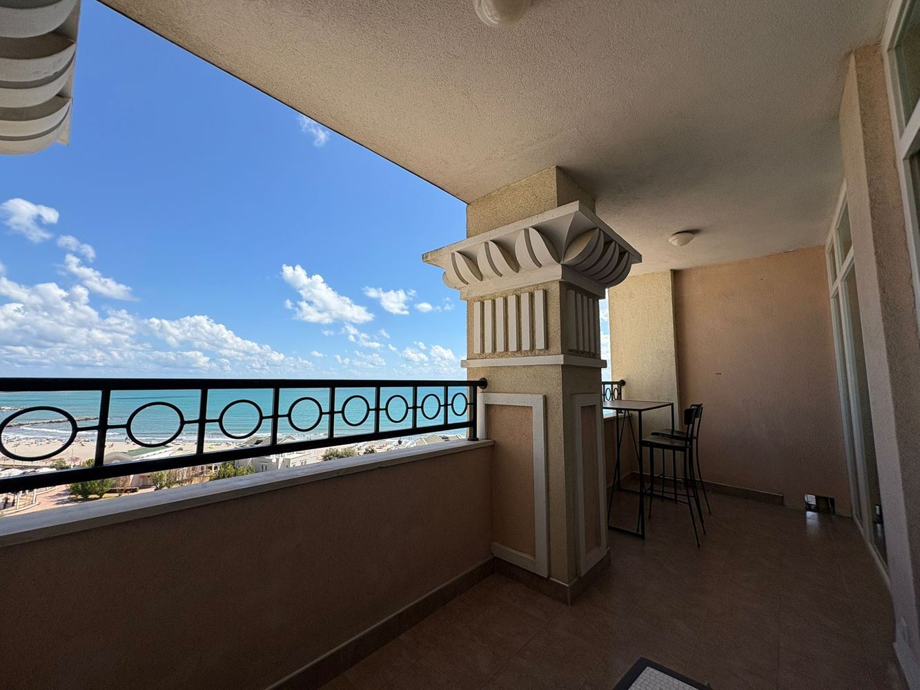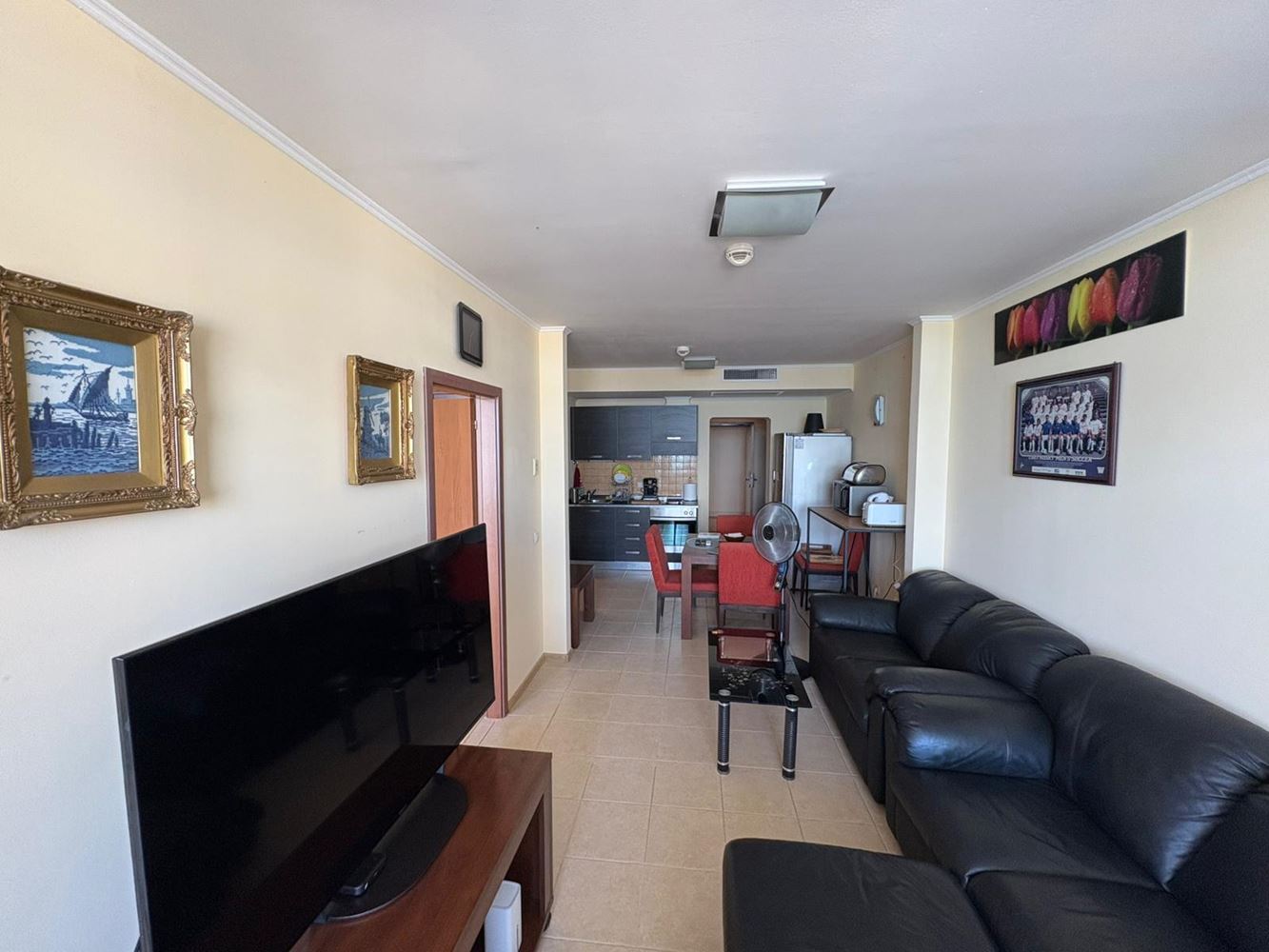 Zum Verkauf steht eine außergewöhnliche Dreizimmerwohnung mit traumhaftem Meerblick in einer der attraktivsten Wohnanlagen direkt in erster Reihe in Pomorie. Diese großzügige Immobilie mit einer Gesamtfläche von 88 m² bietet eine Kombination aus Komfort, Luxus und einzigartigen Annehmlichkeiten, die selbst die anspruchsvollsten Geschmäcker zufriedenstellen werden. Die Wohnung befindet sich im achten Stock von zehn und ist bequem über einen modernen Aufzug erreichbar. Das Interieur ist stilvoll eingerichtet und sofort bezugsfertig. Sie umfasst drei Zimmer: zwei gemütliche Schlafzimmer, ein helles und geräumiges Wohnzimmer mit direktem Zugang zum Balkon, von dem sich ein unverbaubarer Meerblick eröffnet. Das Badezimmer ist komplett ausgestattet und bietet maximalen Komfort.