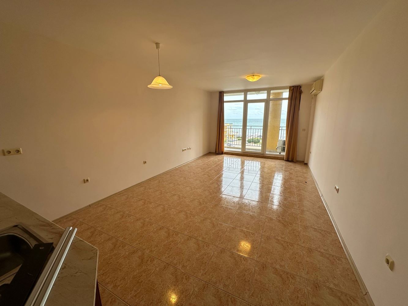 Wir präsentieren Ihnen eine außergewöhnliche Zweizimmerwohnung direkt am Meer in Aheloy – geräumig, hell und mit beeindruckendem Panoramablick auf das Meer. Die Immobilie eignet sich perfekt sowohl für einen erholsamen Urlaub und ganzjähriges Wohnen als auch als sichere Investition mit hervorragendem Vermietungspotenzial. Die Wohnung hat eine Gesamtfläche von 100 m² und eine funktionale Raumaufteilung: ein praktischer Eingangsbereich, ein großzügiges Wohnzimmer mit Küche und Essbereich, ein großes Schlafzimmer, ein Badezimmer mit WC sowie ein breiter Balkon mit endlosem Meerblick. Der Grundriss bietet Komfort und Privatsphäre, während die großen Fenster viel Tageslicht und ein Gefühl von Offenheit schaffen.