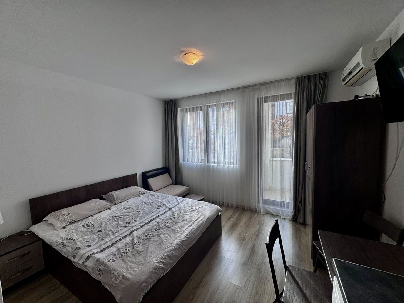 Das Studio ist vollständig möbliert und ausgestattet, einschließlich einer Küchenzeile, eines großzügigen Schlafbereichs und einer gemütlichen Terrasse, von der aus Sie die schönen grünen Gärten des Komplexes genießen können. Jeder Bereich ist so gestaltet, dass maximaler Komfort und Funktionalität gewährleistet sind, während die Terrasse einen perfekten Platz für Morgenkaffee oder Abendentspannung in der Natur bietet.