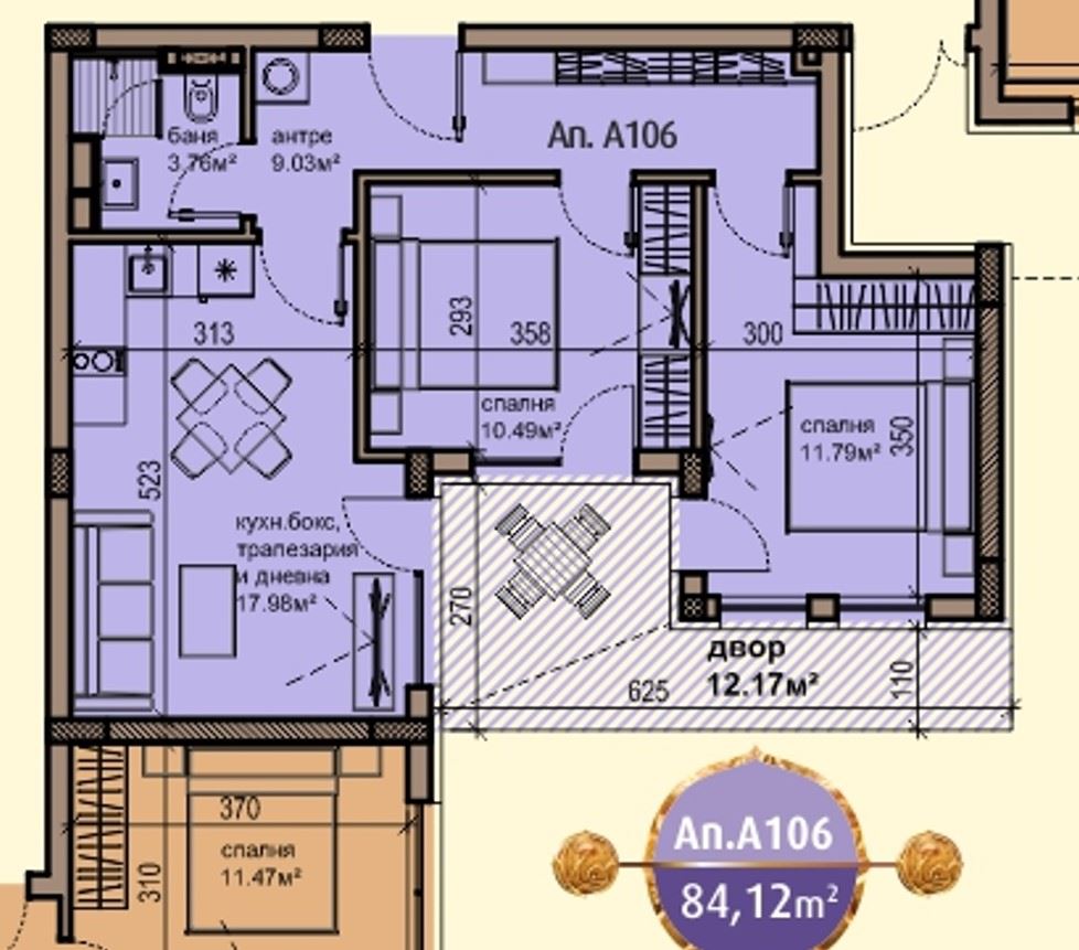 Wir bieten eine funktionale Wohnung mit zwei Schlafzimmern zum Verkauf an, gelegen im Erdgeschoss, mit einer Gesamtfläche von 84,12 m², entworfen mit Liebe zum Detail und den Bedürfnissen der modernen Familie. Die Immobilie verbindet den Komfort einer Wohnung mit dem Gefühl eines Hauses dank eines privaten Gartens mit einer Fläche von 12,17 m², ideal für den Morgenkaffee, einen Ruhebereich oder einen kleinen grünen Garten. Die Raumaufteilung ist praktisch und gut ausgewogen – Eingangsbereich, großzügiges Wohnzimmer mit Küchenzeile, zwei separate Schlafzimmer, Badezimmer mit Toilette sowie ein Balkon mit direktem Zugang zum Garten. Die Wohnung bietet hervorragende Funktionalität, natürliches Licht und die Möglichkeit für komfortables ganzjähriges Wohnen.