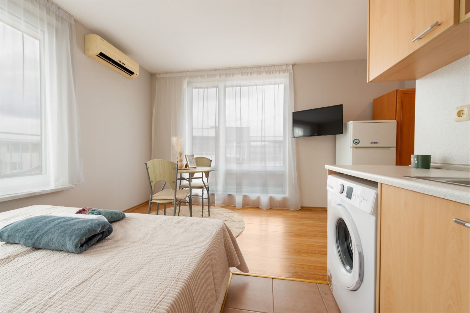 Das Studio ist funktional aufgeteilt und bietet Komfort und Zweckmäßigkeit für den Alltag oder den Urlaubsaufenthalt. Ein separater Stromzähler stellt einen zusätzlichen Vorteil dar und sorgt für Unabhängigkeit und transparente Kosten. Nach der Renovierung befindet sich die Immobilie in sehr gutem Zustand und ist sofort bezugsfertig, ohne weiteren Investitionsbedarf.