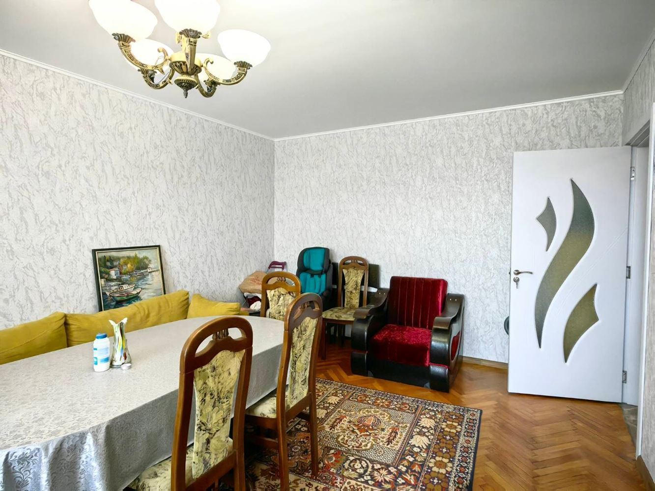 Die Wohnung besteht aus separatem Schlafzimmer, geräumigem Wohnzimmer, eigenständiger Küche, Badezimmer mit Toilette, L-förmigem Flur und drei Terrassen, von denen eine verglast ist und ganzjährig genutzt werden kann. Die Raumaufteilung ist praktisch und bequem, mit klar definierten Bereichen für Entspannung, Kochen und Erholung. Die Wohnung ist sonnig und hell, mit einem angenehmen Gefühl von Raum und Wohnkomfort.