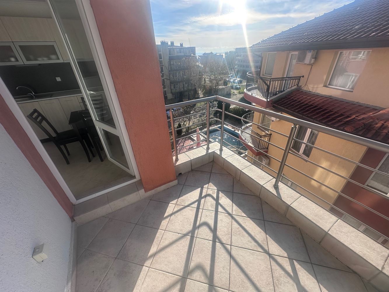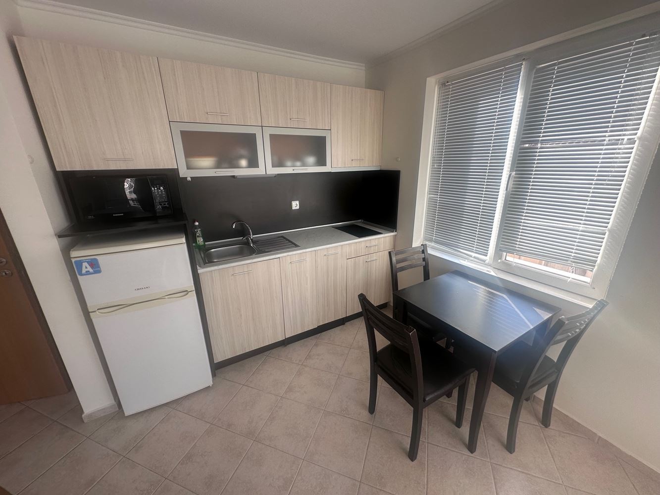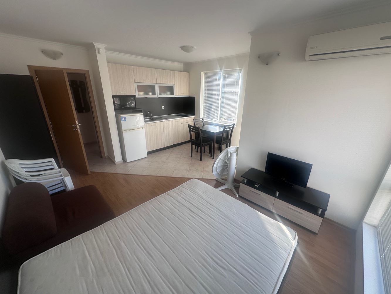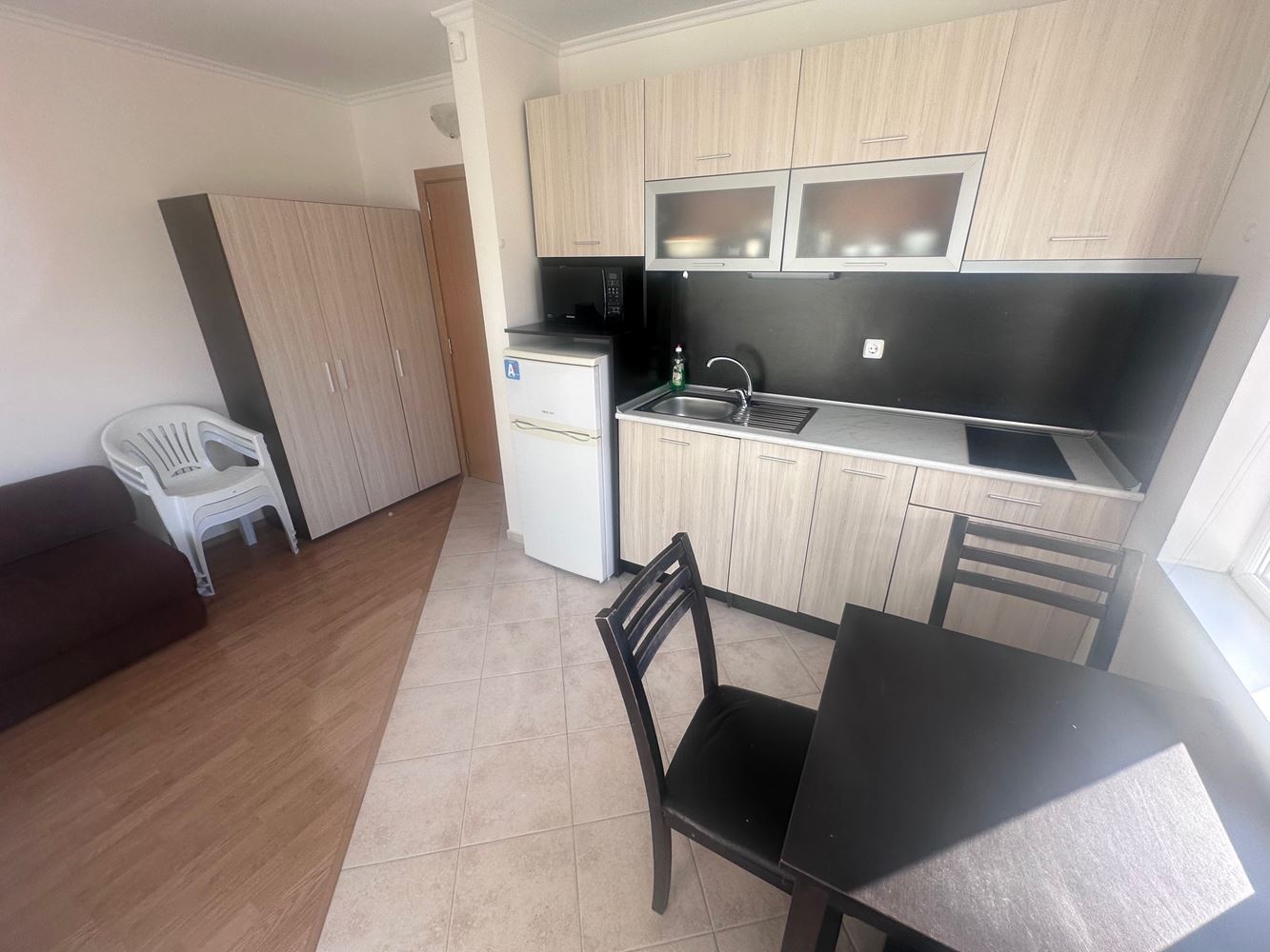Wir präsentieren ein sehr gemütliches und funktionales Studio in der Ferienstadt Nessebar, geeignet sowohl für die Eigennutzung als auch als Investition zur Vermietung. Die Immobilie befindet sich im dritten Wohnstock eines Ferienkomplexes mit Schwimmbad und bietet alles, was für einen komfortablen Aufenthalt am Meer benötigt wird. Die Gesamtfläche der Wohnung beträgt 38 m², aufgeteilt in einen praktischen und hellen Raum mit Schlafbereich und Küche, Flur, Badezimmer mit WC und eine geräumige Terrasse, auf der Sie Ihren Morgenkaffee oder die Abendbrise genießen können.