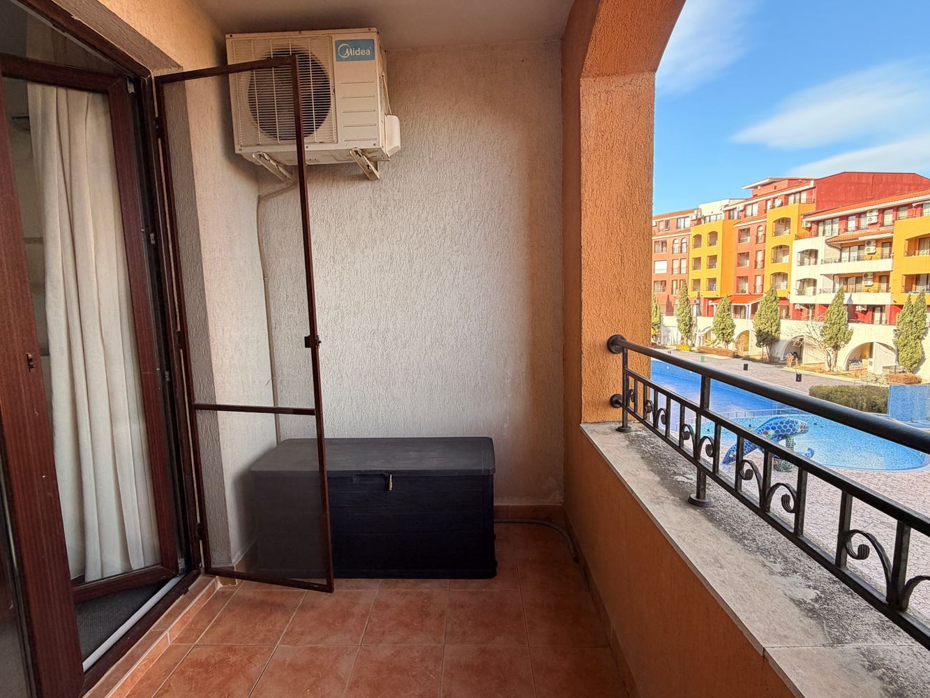 Die Immobilie verfügt über ein Badezimmer mit Toilette sowie eine Terrasse mit Blick auf den Pool, die einen angenehmen Ort für den Morgenkaffee oder Entspannung nach einem erlebnisreichen Tag am Meer bietet.