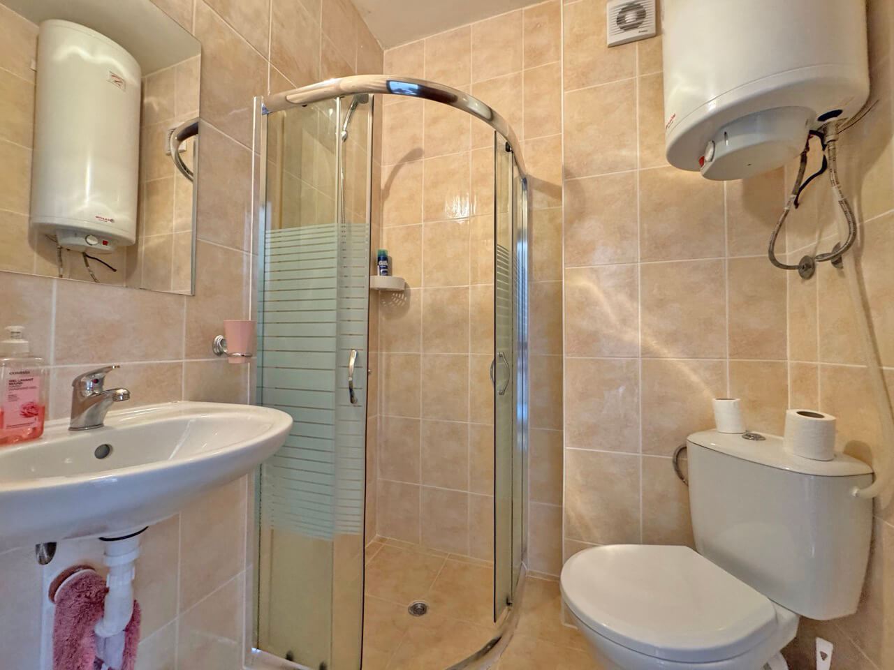 Wir präsentieren Ihnen ein charmantes Studio, gelegen in der Region eines der beliebtesten Ferienorte an der bulgarischen Schwarzmeerküste – Sonnenstrand. Diese kompakte und praktische Wohnung bietet auf einer Gesamtfläche von 28 m² alles Notwendige für einen komfortablen Aufenthalt. Das Studio befindet sich im obersten Stockwerk eines gemütlichen Wohnkomplexes, der die Annehmlichkeiten eines Feriendorfes vereint. Obwohl das Gebäude keinen Aufzug hat, wird die Mühe durch den Panoramablick auf den Ferienort vom Balkon mehr als belohnt.