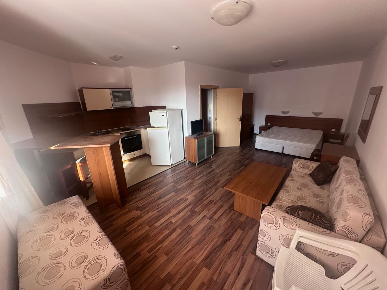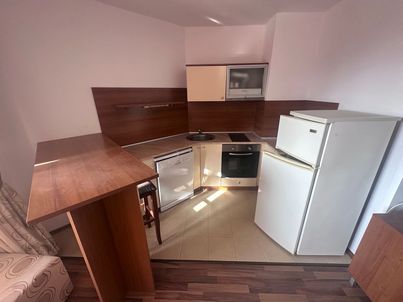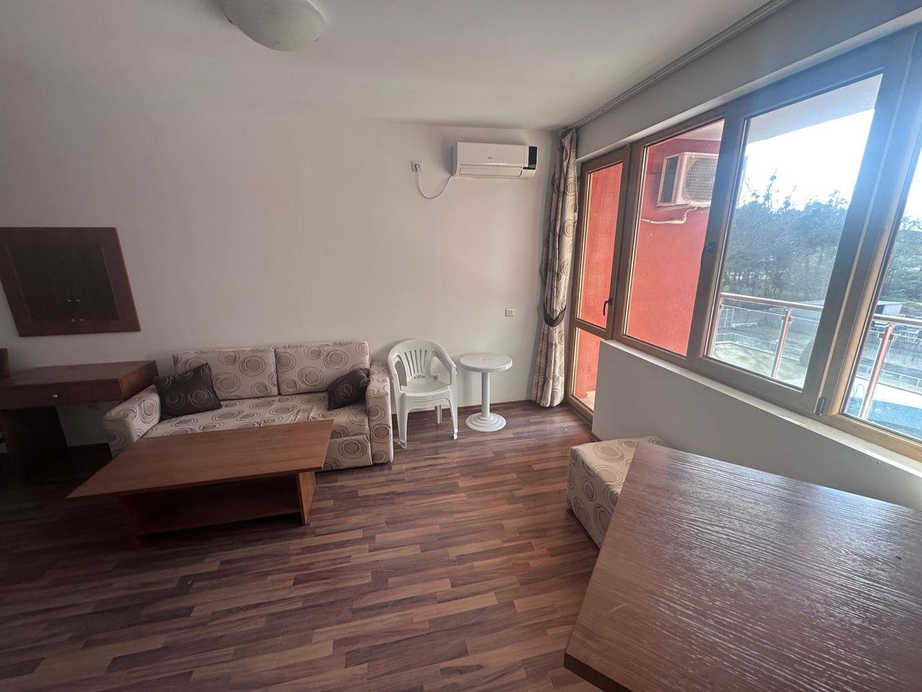 Wir bieten ein komplett eingerichtetes Studio mit einer Fläche von 56,07 m2, das sich im ersten Stock eines der attraktivsten Komplexe an der Grenze zwischen Sonnenstrand und Nessebar befindet. Die Immobilie vereint Ruhe, Komfort und eine prestigeträchtige Lage und bietet einfachen Zugang zu allen touristischen und Unterhaltungsmöglichkeiten, die die beiden Ferienorte zu bieten haben. Die Wohnung ist funktional aufgeteilt und umfasst ein helles Wohnzimmer mit Küchenzeile, ein Badezimmer mit WC und eine Terrasse mit Blick auf den Pool. Die Wohnung wird komplett möbliert und ausgestattet verkauft und ist sofort bezugsfertig oder kann vermietet werden. Die Geräumigkeit und das durchdachte Design schaffen eine komfortable und gemütliche Atmosphäre für das ganze Jahr oder einen Urlaubsaufenthalt.