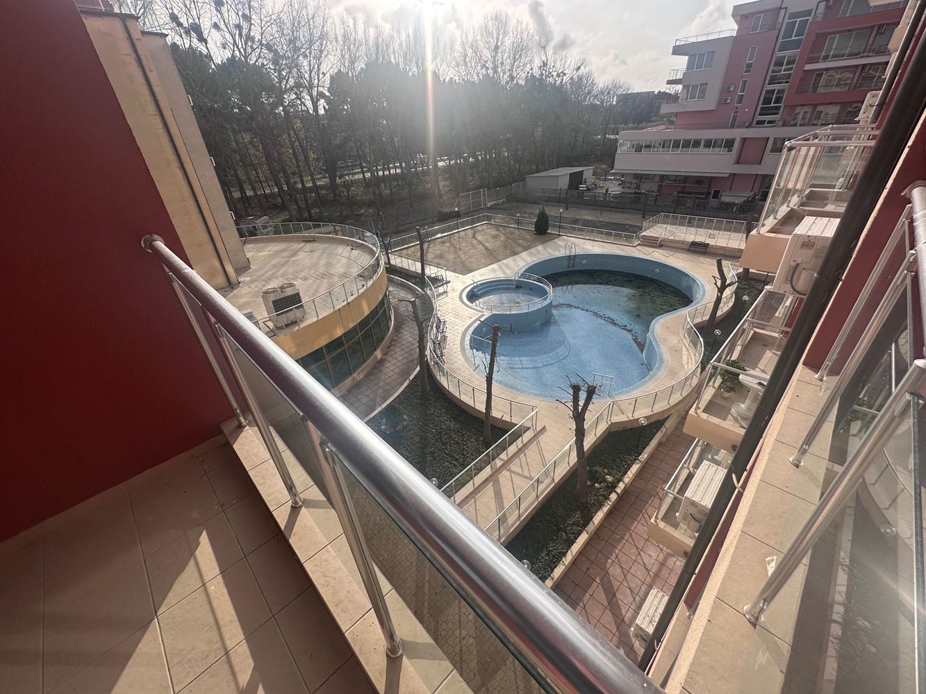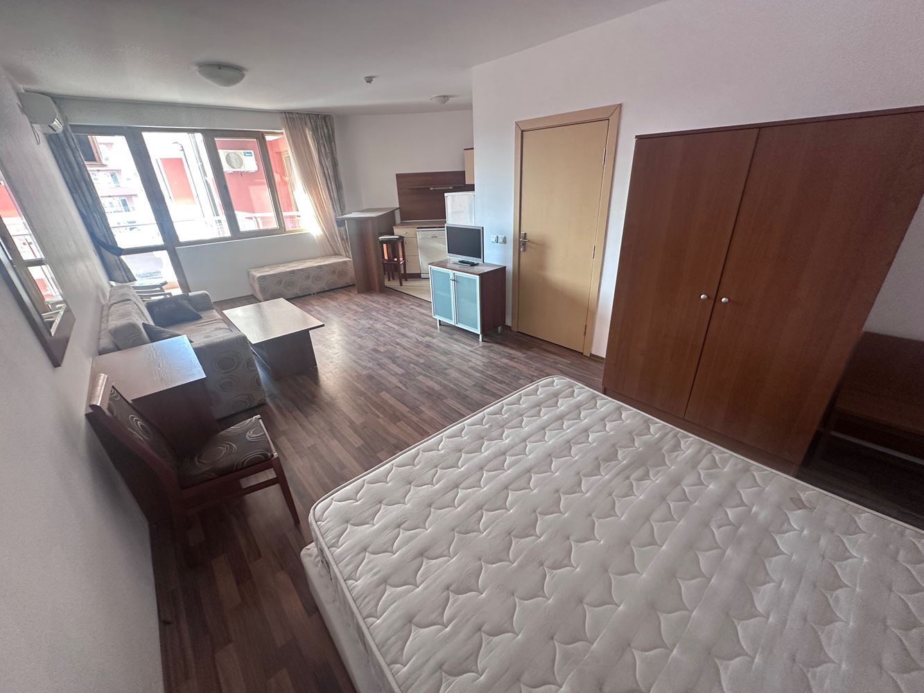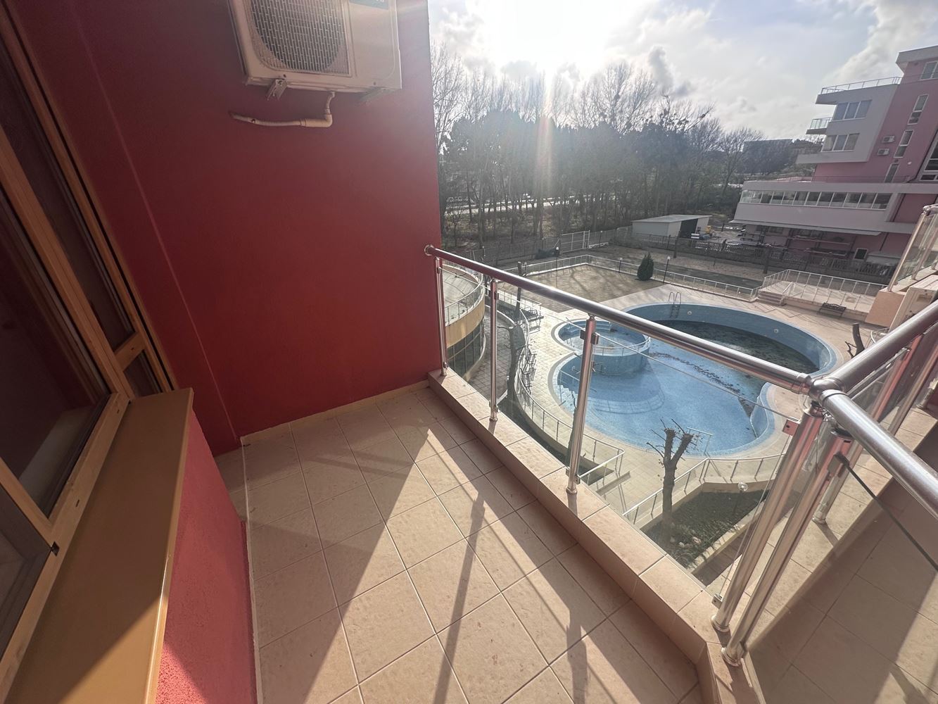 Wir bieten ein komplett eingerichtetes Studio mit einer Fläche von 56,07 m2, das sich im ersten Stock eines der attraktivsten Komplexe an der Grenze zwischen Sonnenstrand und Nessebar befindet. Die Immobilie vereint Ruhe, Komfort und eine prestigeträchtige Lage und bietet einfachen Zugang zu allen touristischen und Unterhaltungsmöglichkeiten, die die beiden Ferienorte zu bieten haben. Die Wohnung ist funktional aufgeteilt und umfasst ein helles Wohnzimmer mit Küchenzeile, ein Badezimmer mit WC und eine Terrasse mit Blick auf den Pool. Die Wohnung wird komplett möbliert und ausgestattet verkauft und ist sofort bezugsfertig oder kann vermietet werden. Die Geräumigkeit und das durchdachte Design schaffen eine komfortable und gemütliche Atmosphäre für das ganze Jahr oder einen Urlaubsaufenthalt.
