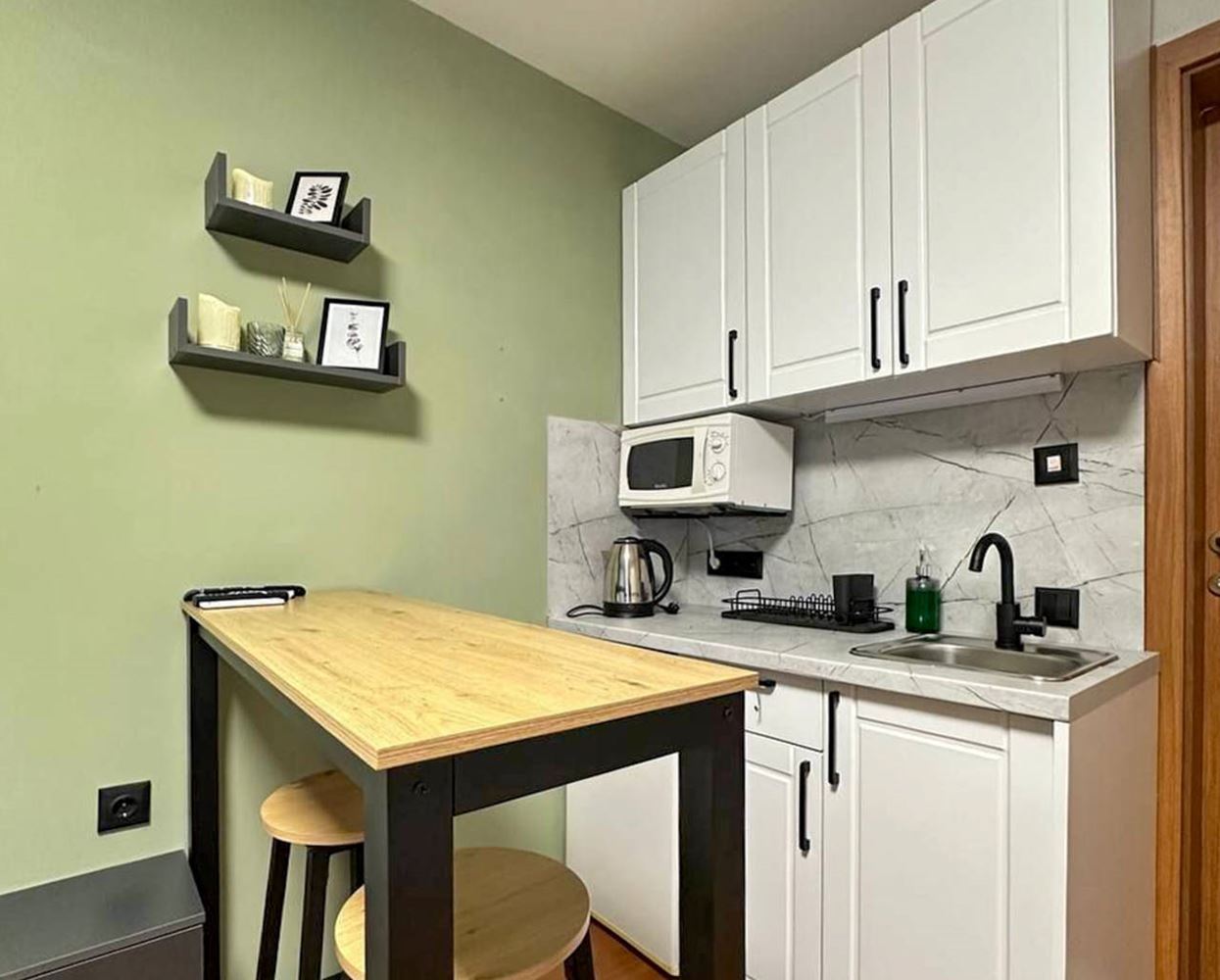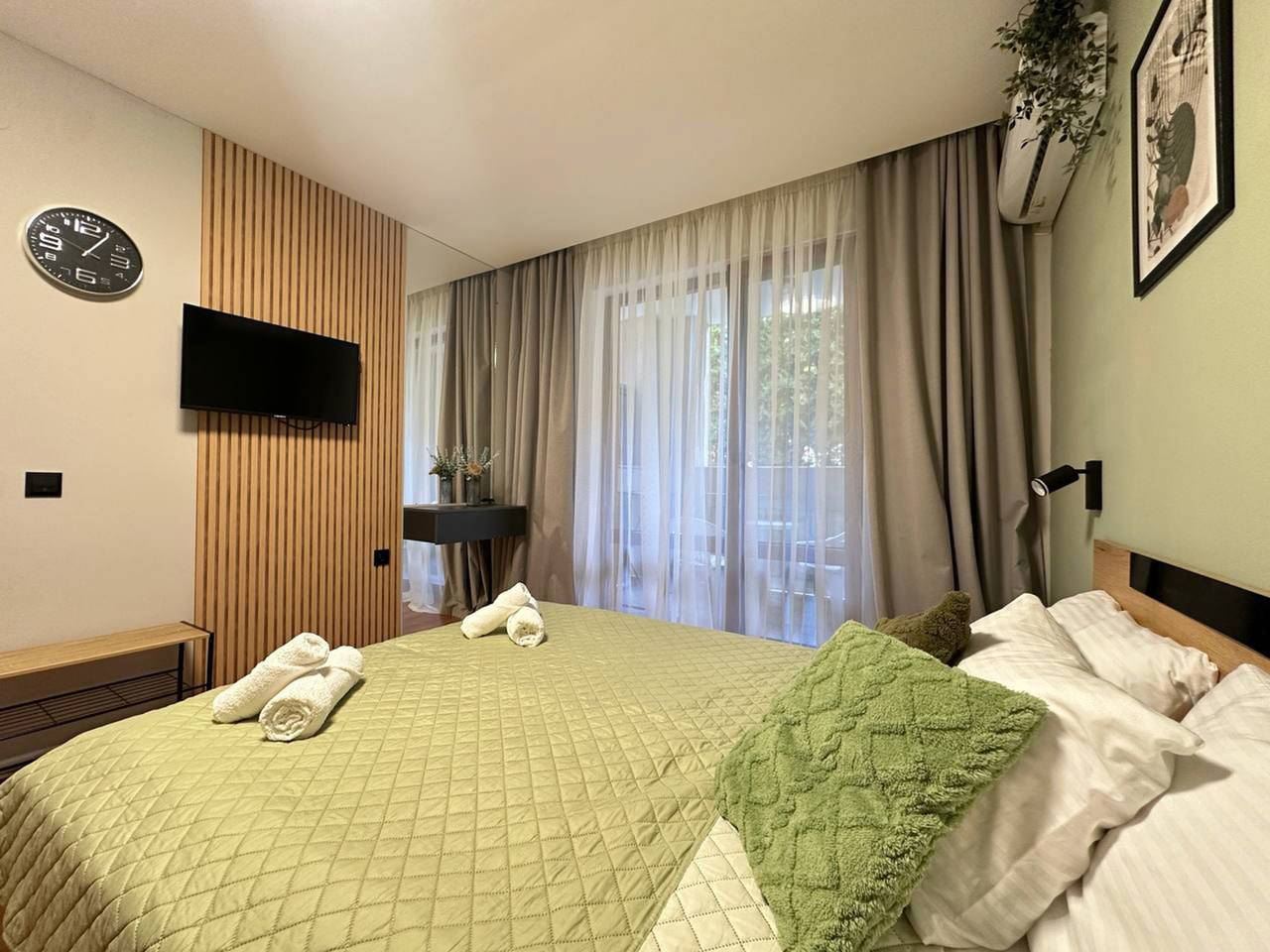Wir präsentieren ein stilvolles und funktionales Studio-Apartment mit einer Gesamtfläche von 34 m², gelegen im Erdgeschoss eines der luxuriösesten Komplexe in Sveti Vlas. Die Wohnung ist vollständig möbliert und bietet Gemütlichkeit und Komfort, kombiniert mit Blick auf grüne Flächen – der perfekte Ort für Entspannung und Erholung am Meer.